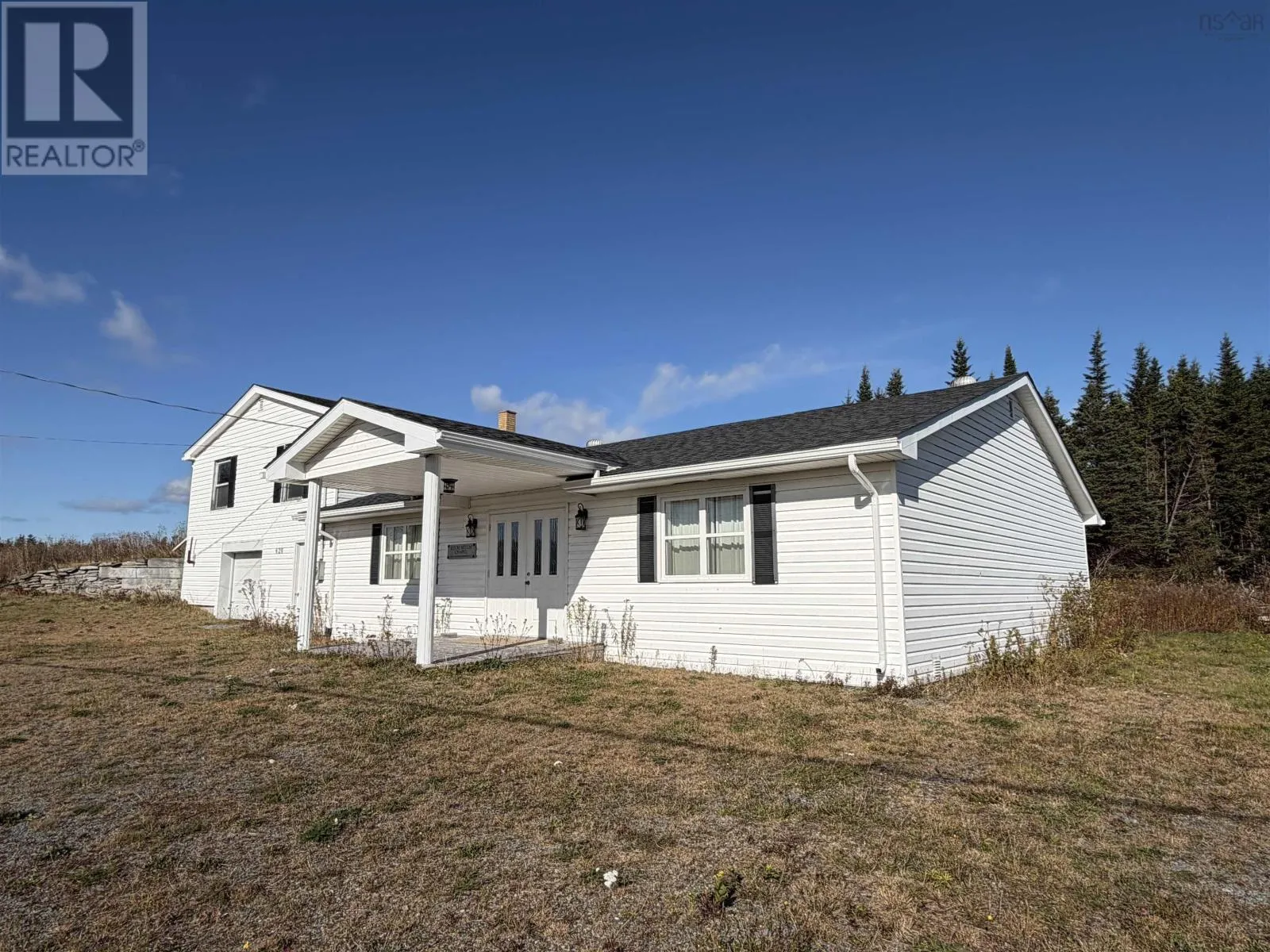 a newer roof, a 125-amp breaker panel, and a generator panel. The main level offers electric heaters in each room and features a spacious front entry leading to a large foyer. To the right is a generously sized office or potential bedroom, while straight ahead, double French doors open into the main hallan adaptable space that could be reimagined as a primary living area or customized for business use. To the left of the foyer is a den or sitting area that connects to a hallway with storage and a secondary front entrance. This hallway also provides access to the furnace room and crawl space basement. The upper level offers a blank canvas suitable for additional living space, bedrooms, or a potential apartment, complete with its own separate entrance. Additional features include a built-in garage and ample backyard space, further enhancing the propertys flexibility and appeal. This property is 35 minutes from Sheet Harbour and all amenities and 12 minutes from Moser River with Post Office and corner store. (id:62650)