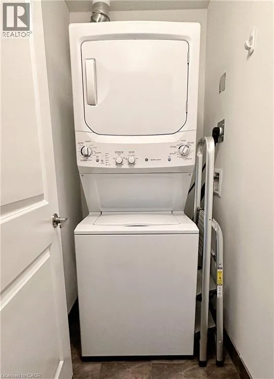 Enjoy condo living in the east side of Burlington. Freshly painted 1 bedroom plus den unit in the desirable Corporate community. Walk out from the living room to your own South facing private terrace. 9 ft ceilings, Stainless Steel appliances, neutral countertops, & laminate flooring. The unit includes a fridge, stove, built-in dishwasher, built-in microwave, washer, and dryer. Underground parking