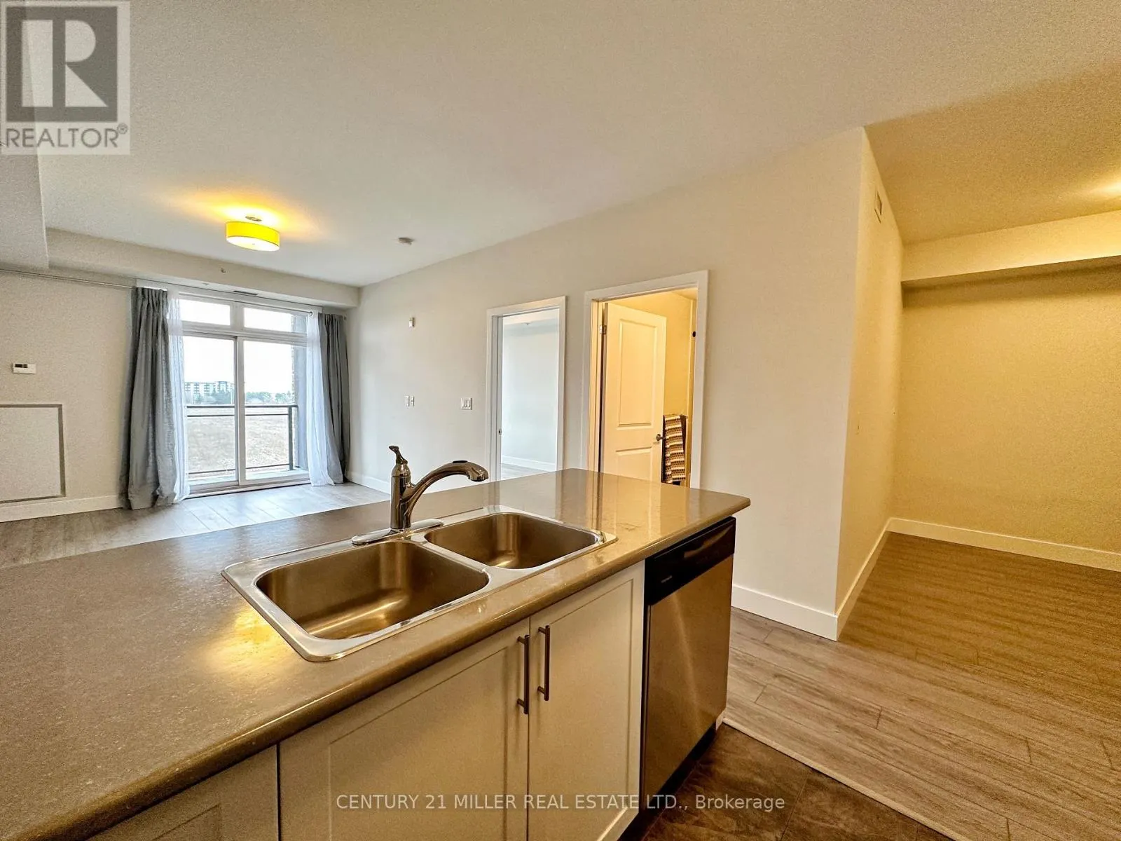 Enjoy condo living in the east side of Burlington. Freshly painted 1 bedroom plus den unit in the desirable Corporate community. Walk out from the living room to your own South facing private terrace. 9 ft ceilings, Stainless Steel appliances, neutral countertops, & laminate flooring. The unit includes a fridge, stove, built-in dishwasher, built-in microwave, washer, and dryer. Underground parking