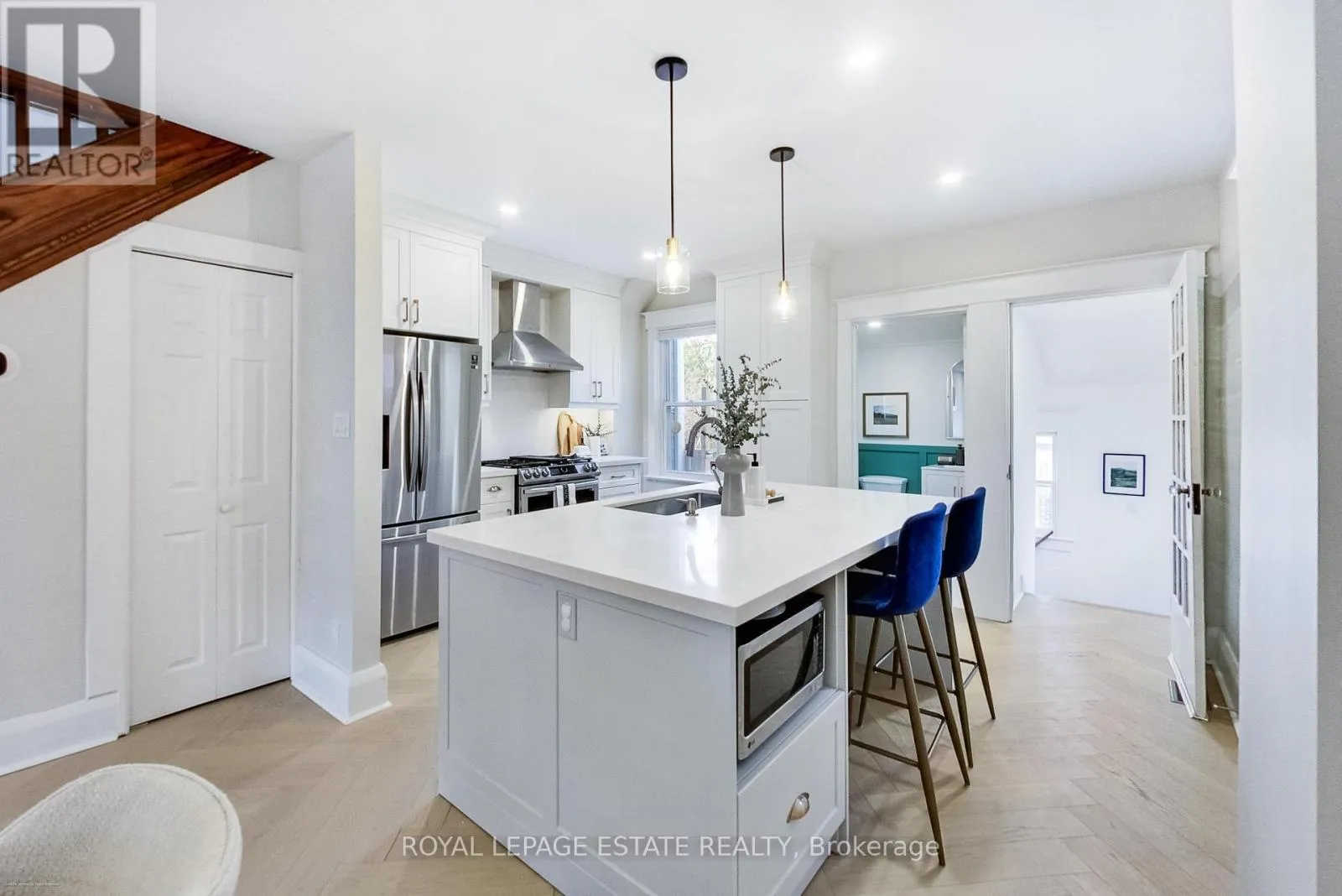 Stunning, spacious open-concept home featuring an oversized, fully renovated main floor with elegant herringbone hardwood flooring, a beautifully designed chef’s kitchen and a stylish powder room – perfect for entertaining and everyday living. Upstairs, the primary bedroom easily accommodates a king-sized bed and is complemented by two additional generously sized bedrooms and a renovated 4 piece bathroom. The fully finished