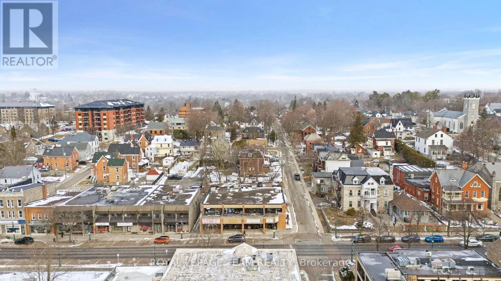 Excellent investment opportunity in the heart of downtown Brockville, just steps from the St. Lawrence River. Ideally positioned on a prominentcorner lot along King Street, Brockville’s primary downtown commercial corridor, this property offers exceptional visibility and convenient accessto Highway 401. This well-maintained two-storey steel and brick building comprises approximately 8,995 square feet and features a fully leasedmixed-use configuration with two