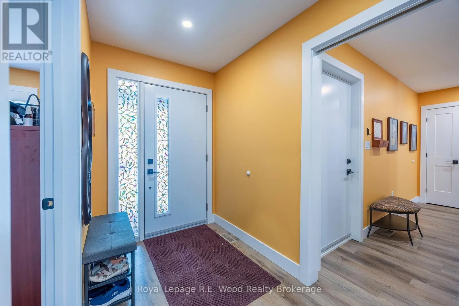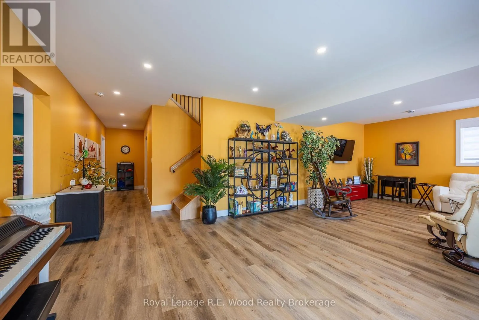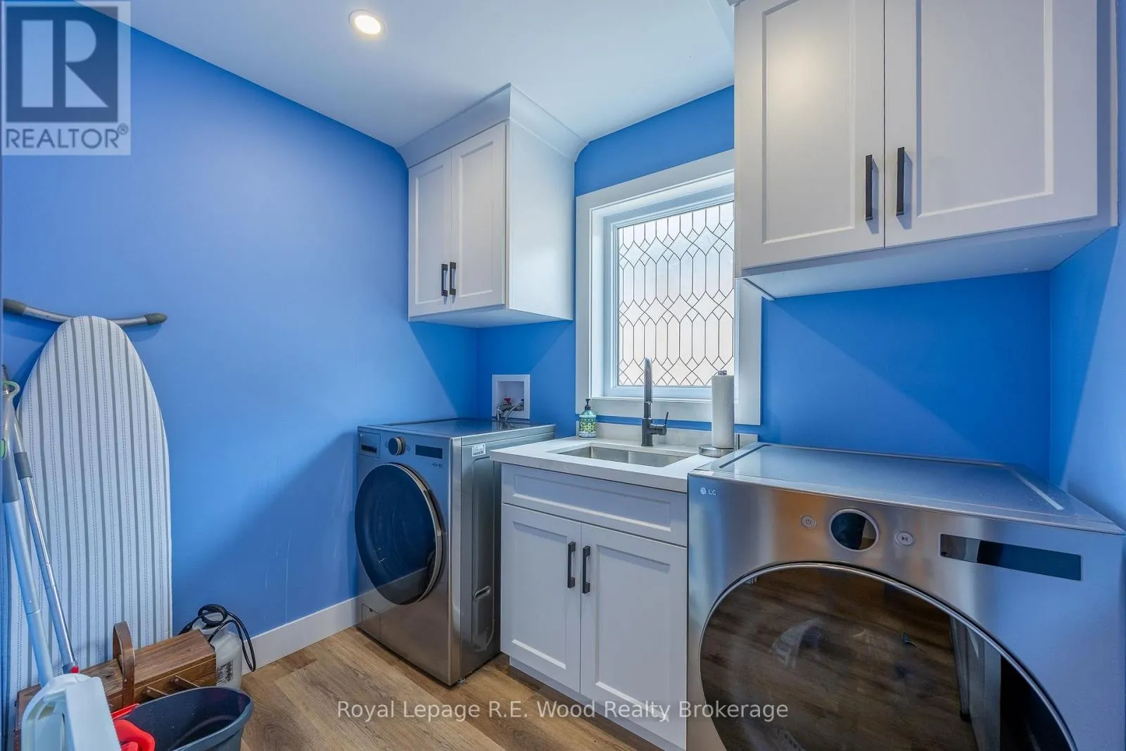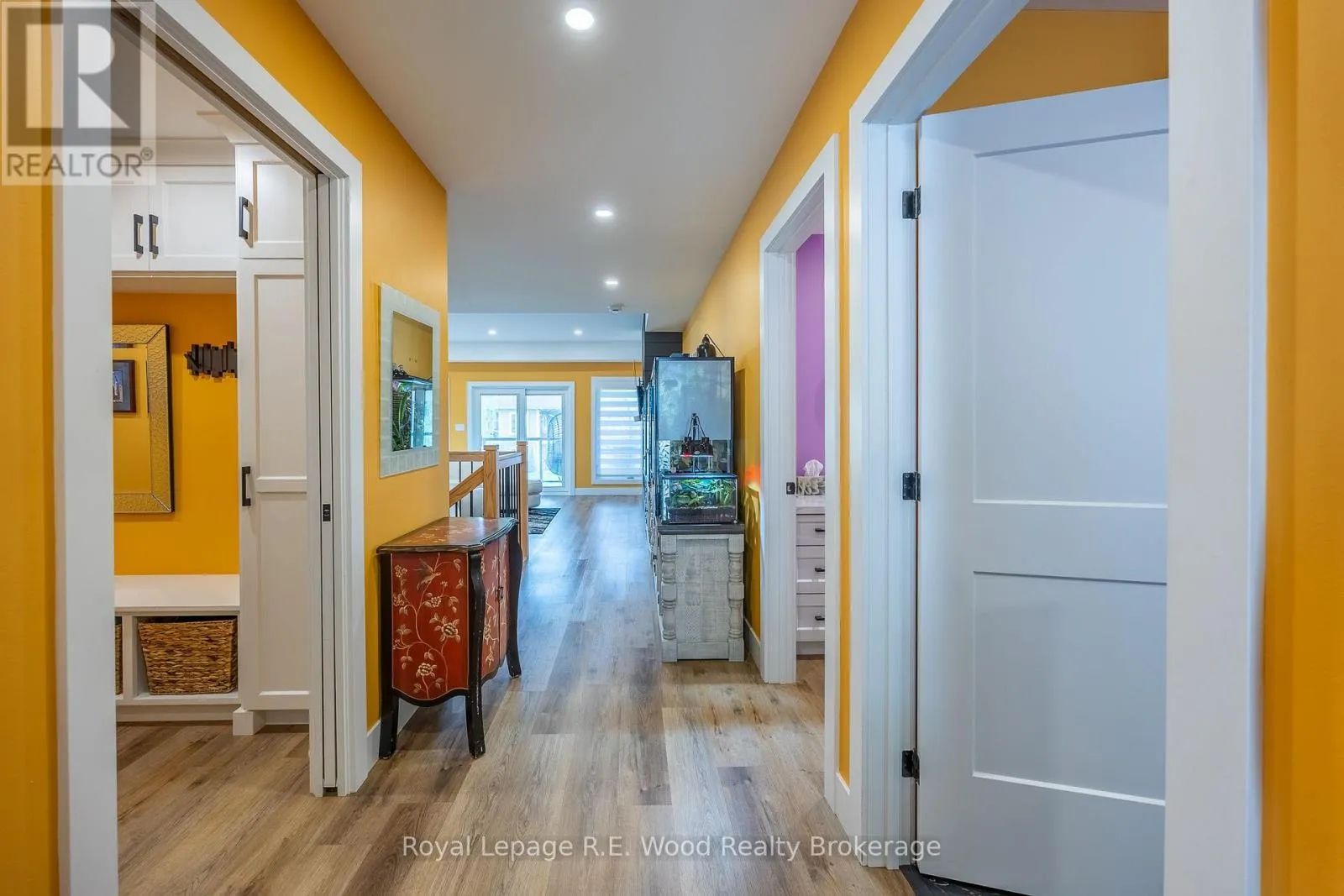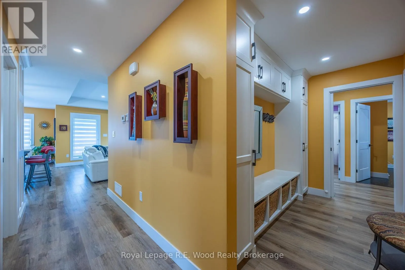 Experience stylish living in this beautifully designed bungalow in Mill Pond Estates with a walkout basement and stunning pond views. The sleek black and white stucco exterior sets the tone for the modern finishes throughout. Step into a spacious mudroom with main floor laundry, leading to an open-concept living area with a cozy gas fireplace and patio doors to the
