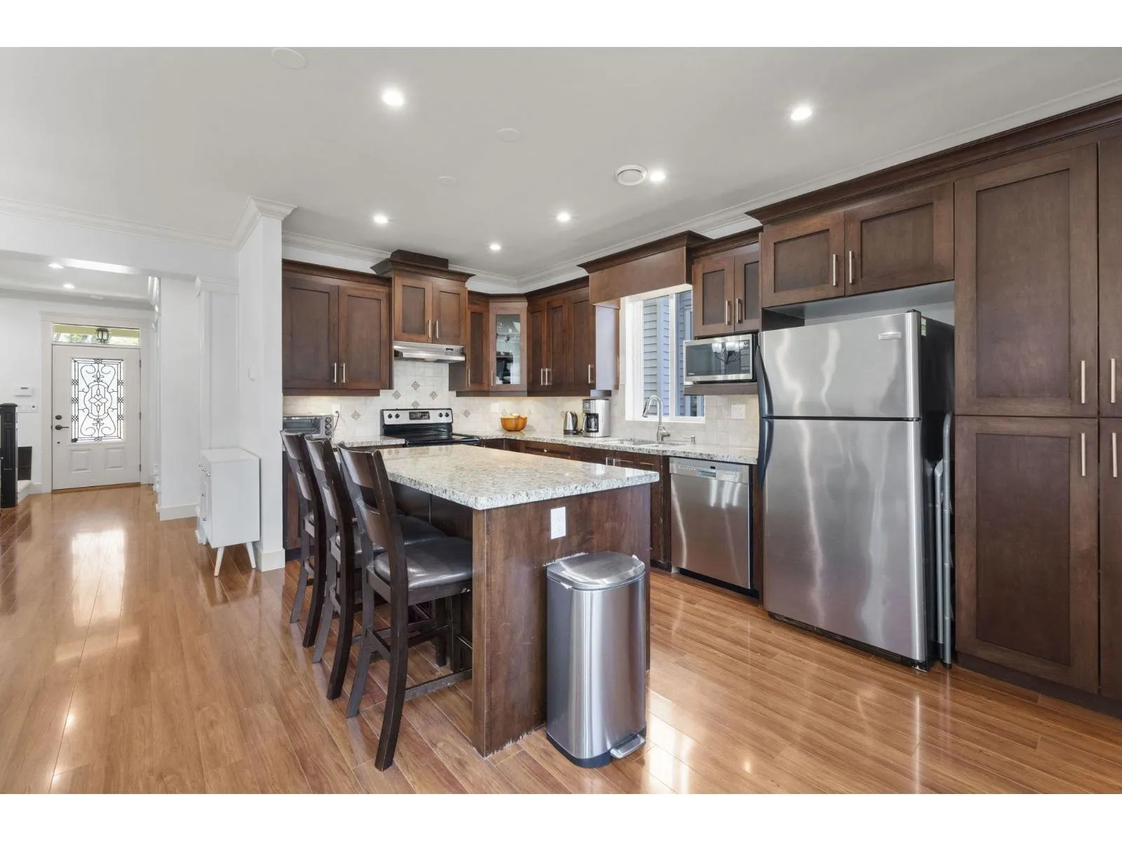 Welcome to this beautifully maintained 6 bedroom & 5 bathroom home offering over 2,600+ sqft of living space in desirable Clayton Heights. The main home features a bright, open layout with a gourmet kitchen boasting granite countertops, S/S appliances, and a large island. Upstairs offers 3 spacious bedrooms, including a primary suite with walk-in closet and ensuite. Basement offers a
