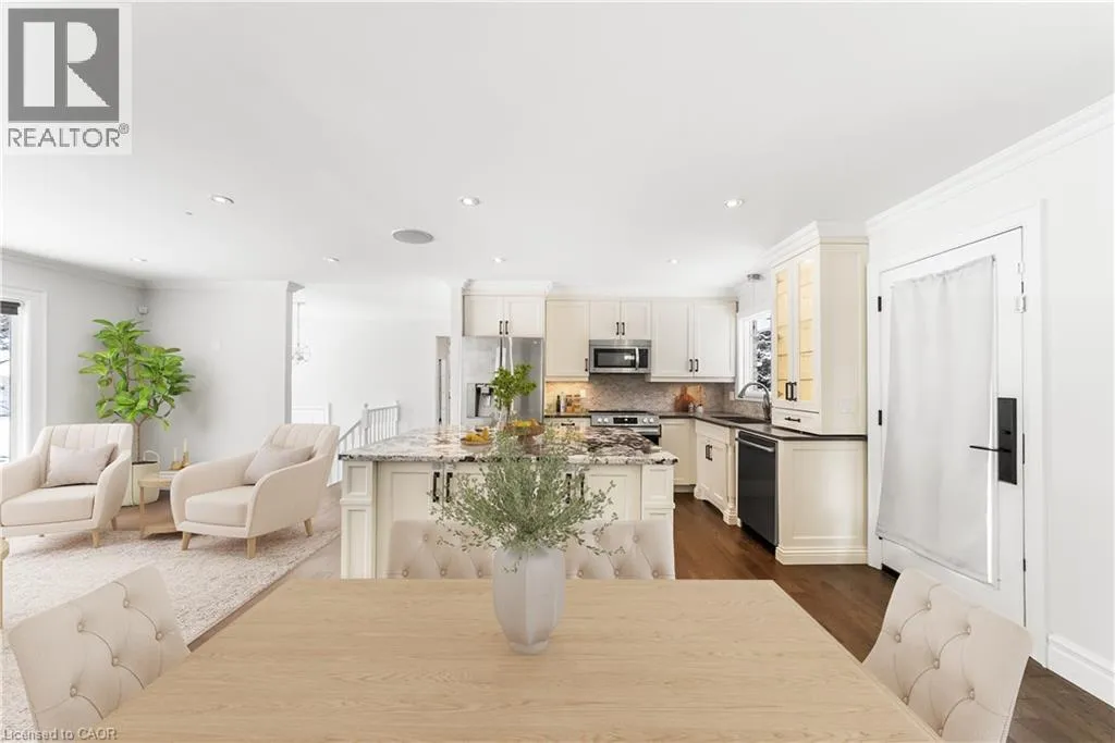 Located on a quiet, tree-lined crescent in highly sought-after South East Oakville, this beautifully renovated 3+1 bedroom raised bungalow offers bright, open-concept living . The main floor features a spacious living and dining area, a gourmet kitchen with stainless steel appliances and a large centre island, hardwood floors, and oversized windows. Walk out to a private, fully fenced backyard with
