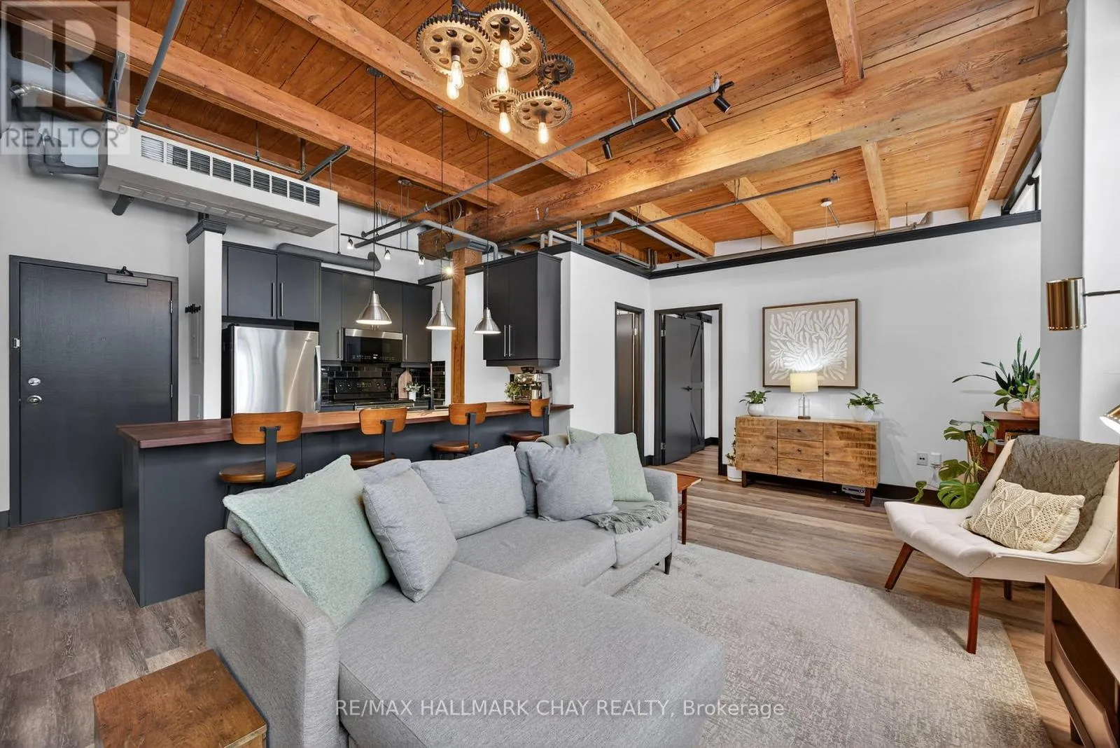 Timothy St Loft’s Redesigned by Aspen & Ivy where Modern Charm Meets Urban Luxury! This Large 2 Bedroom Unit boasts Incredible Western, Ravine & City Views! Soaring 13’+ Ceilings with exposed Beams and Mechanicals for a Bright Trendy Vibe. Welcome to Unit 106 – A private, main floor & corner unit – Units like this one rarely come available! Two