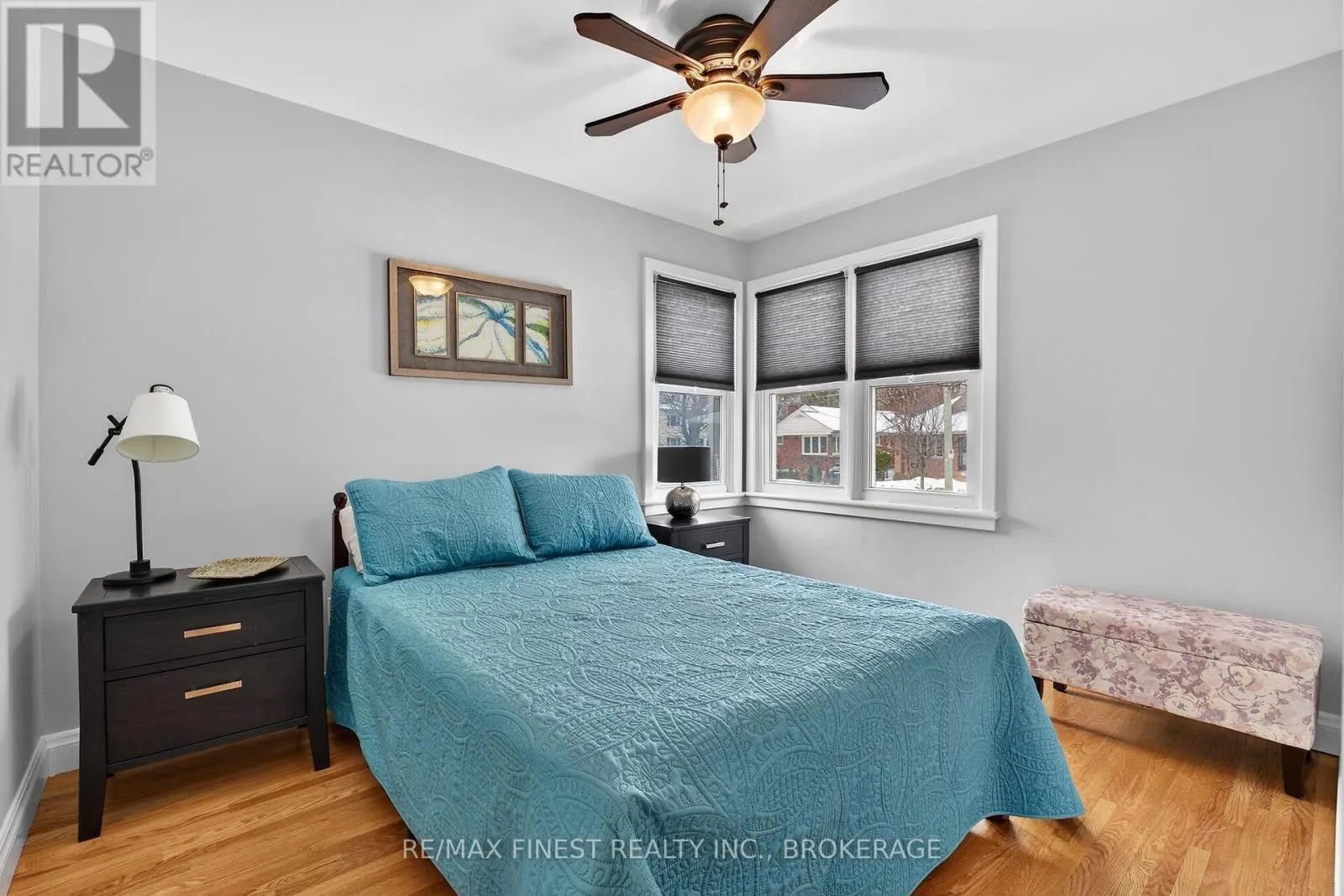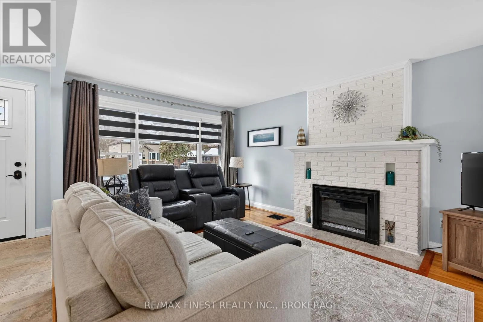 Charming all-brick bungalow with a single car garage in a prime central location, just a short walk from everyday amenities including groceries, banks, retail shops, and fitness centers. This well-maintained home offers a bright and inviting layout that welcomes you the moment you walk in. The living room features a large front window, electric fireplace and gleaming hardwood floors. The