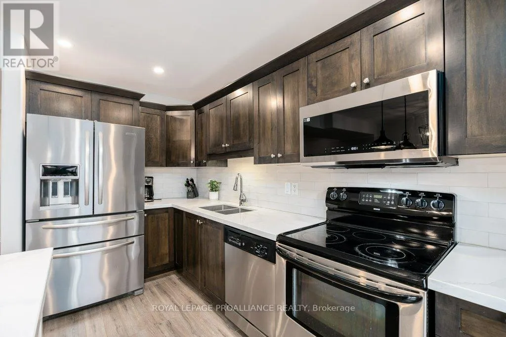 Welcome to this beautifully updated end-unit two-storey townhome located in the heart of Belleville. This bright, open-concept home features a stunning updated kitchen complete with quartz countertops, a new large centre island showcasing elegant pendant lighting, stylish new backsplash and complemented by new pot lighting. Upstairs, you’ll find three spacious bedrooms, including a generous primary suite with a walk-in closet,