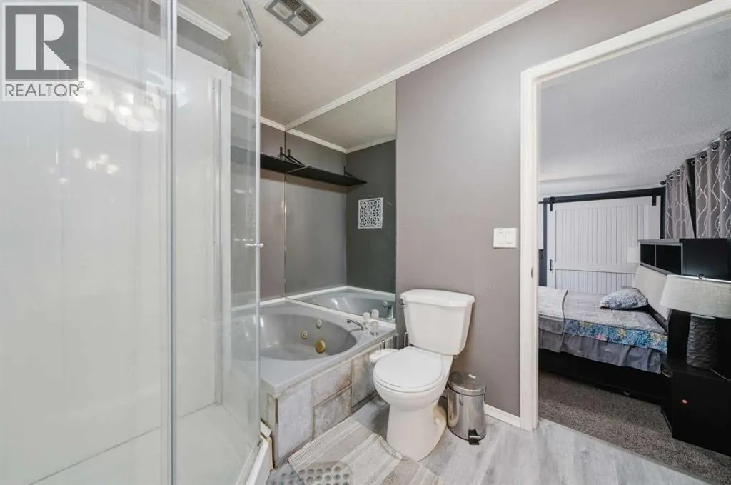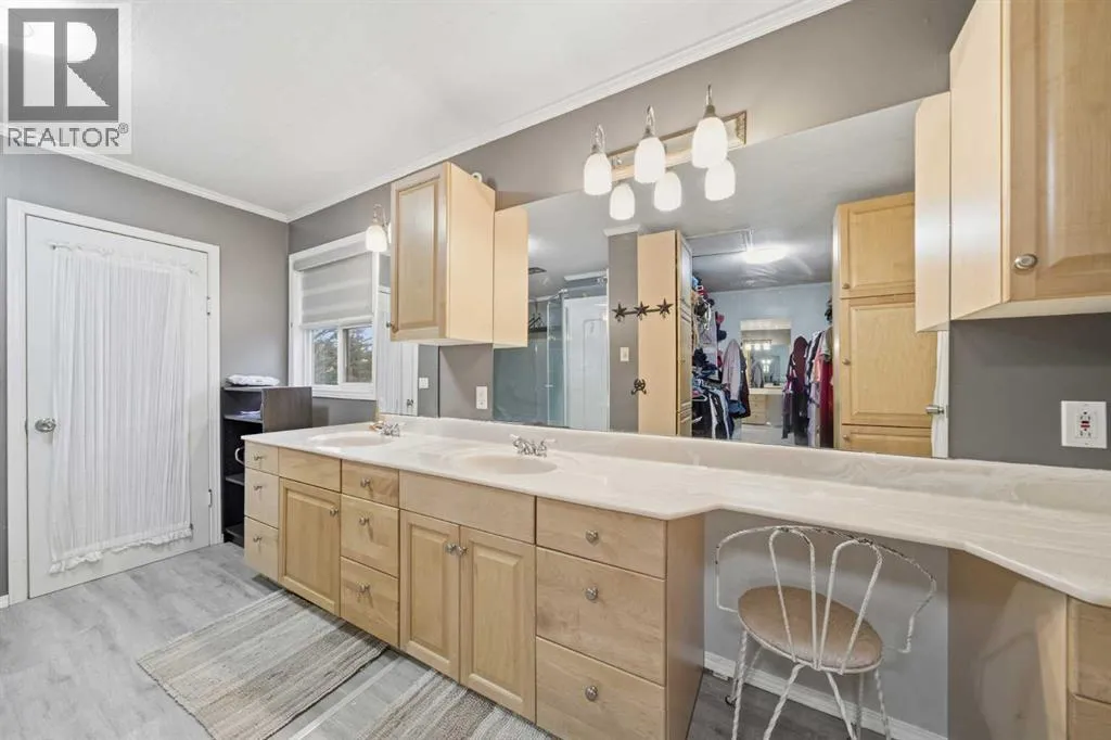 residence provides a serene lifestyle while maintaining convenient access to daily necessities and major roadways.The home features thoughtfully selected farmhouse-inspired finishes, including reclaimed elements sourced from historic sites. The well-appointed kitchen includes stainless steel appliances, ample counter space, and extensive cabinetry, providing both functionality and style. The adjoining dining room offers a warm and inviting space for family gatherings and special occasions.A dramatic, light-filled family room showcases vaulted ceilings and expansive windows framing the peaceful natural surroundings. The sunken living room adds an additional cozy retreat, complete with a wood-burning fireplace and bay window — ideal for relaxing on cooler evenings.The upper level hosts a charming primary bedroom with double barn-door closet access, a gas fireplace, and a private balcony overlooking the treed landscape — the perfect spot for morning coffee or quiet reflection. A second bedroom, flex room, and spacious 5-piece bathroom complete this level. The finished lower level offers a large multi-purpose space, an additional bedroom with 2-piece bathroom (macerating toilet), and direct walk-up access to the outdoors.The fully developed lower level offers exceptional additional living space, featuring a bedroom, a 2-piece bathroom (macerating toilet), a large recreation room, storage area, and direct walk-up access to the outdoors, making it ideal for guests, teens, or multi-use living.Outdoor FeaturesThe property offers endless opportunities to explore and enjoy nature with mature trees, walk ing paths, and multiple outdoor activity and relaxation areas. Additional amenities include:• Cottage-style playhouse• Swings and outhouse• Chicken coop and horse shelters• Wood sheds and detached garage• Two firepit areas and water features• Expansive deck space• Pasture and stock waterers — ideal for horse ownersRecent Upgrades• Gas stove• Window blinds• Water filtration system• New hot water tank• New furnaceLocation & Investment AppealConveniently located near Honda Okotoks, this property offers excellent access to shopping, services, and commuter routes. A fantastic opportunity for buyers seeking space, lifestyle, and long-term land value in the Okotoks and surrounding area.This one-of-a-kind property combines character, comfort, and possibility — a rare offering that truly must be experienced. (id:64429)