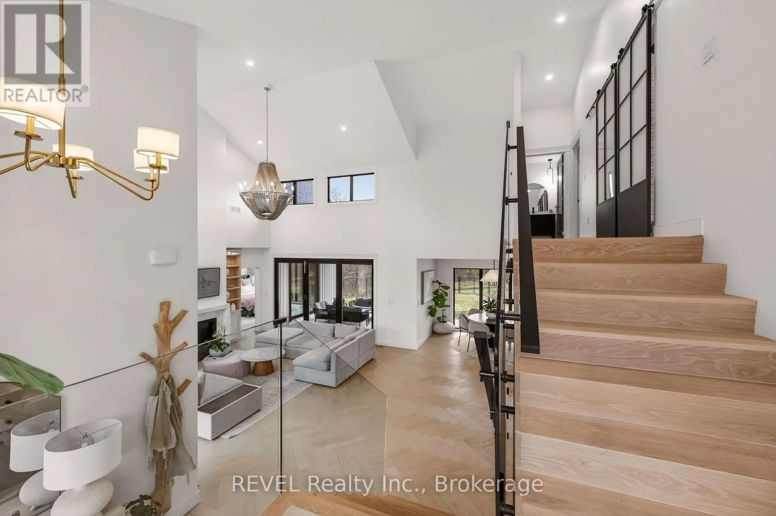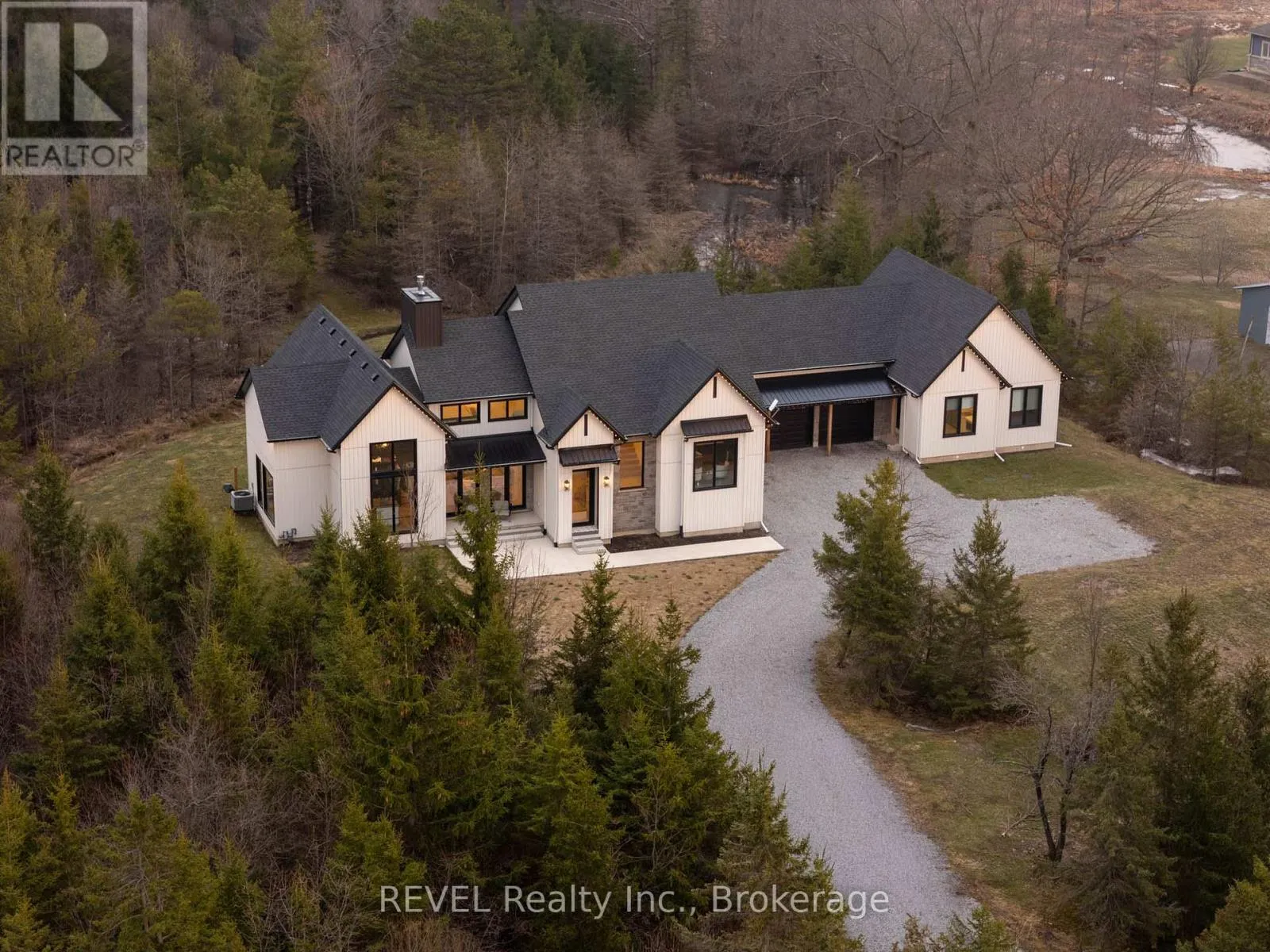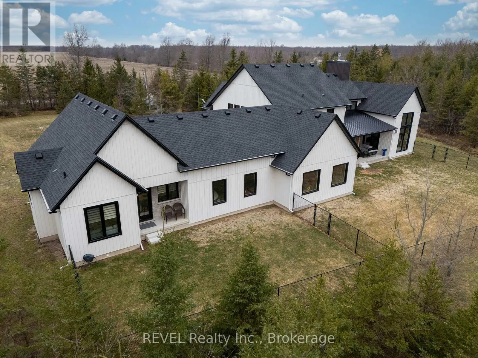 Set on nearly six scenic acres, this newly built bungaloft (2024) offers an exceptional blend of thoughtful design, quality finishes, and peaceful surroundings. Bright, open-concept living spaces are highlighted by soaring ceilings, oversized windows, and a seamless flow ideal for both everyday living and entertaining. The main living area features rich hardwood flooring, a striking gas fireplace with custom built-ins,