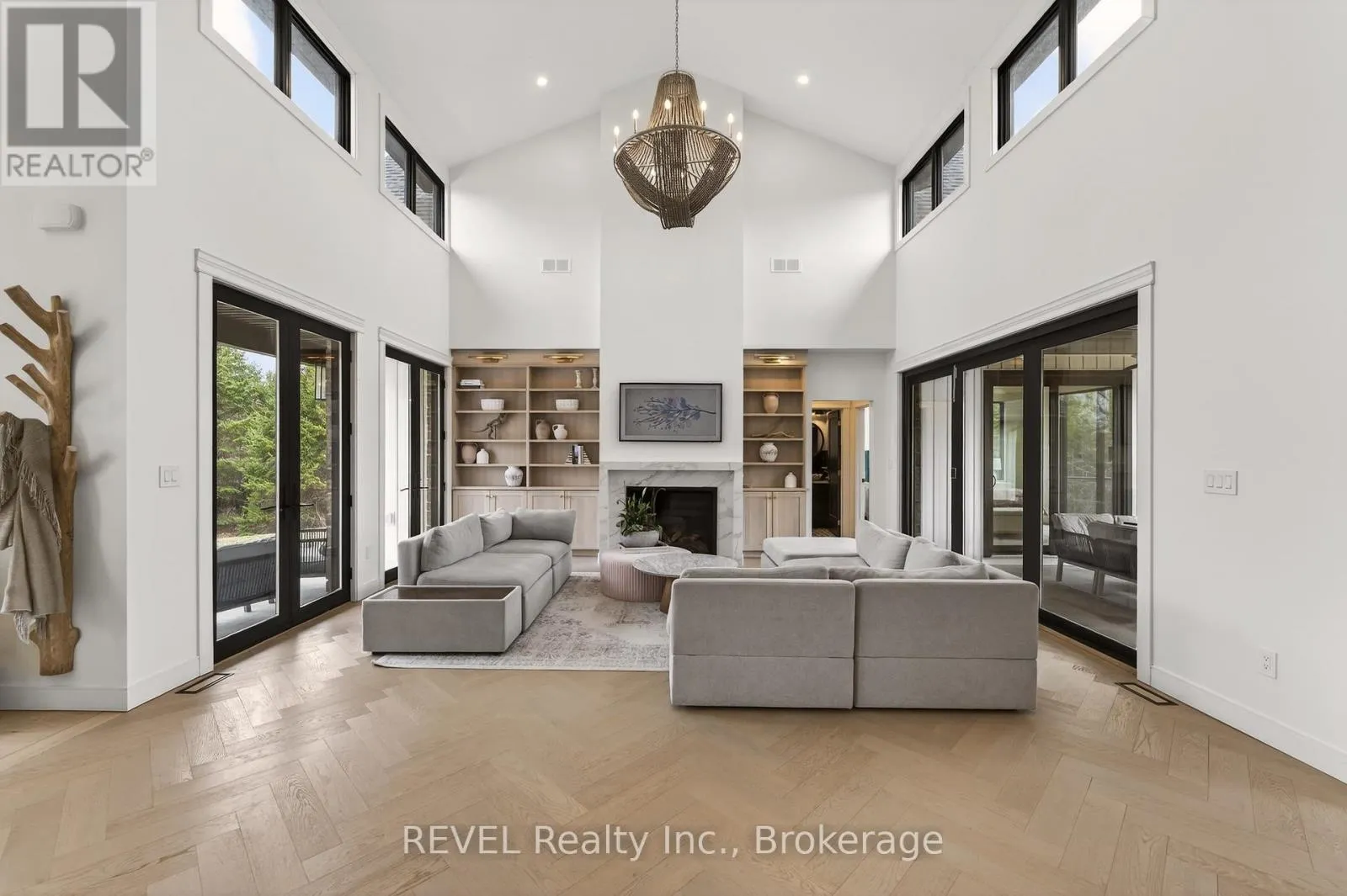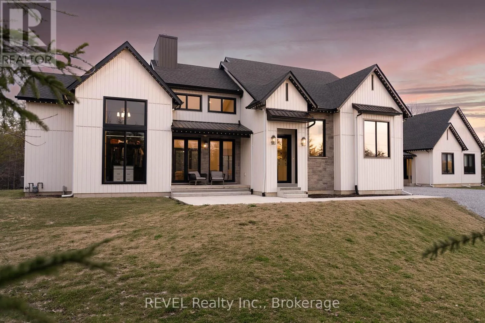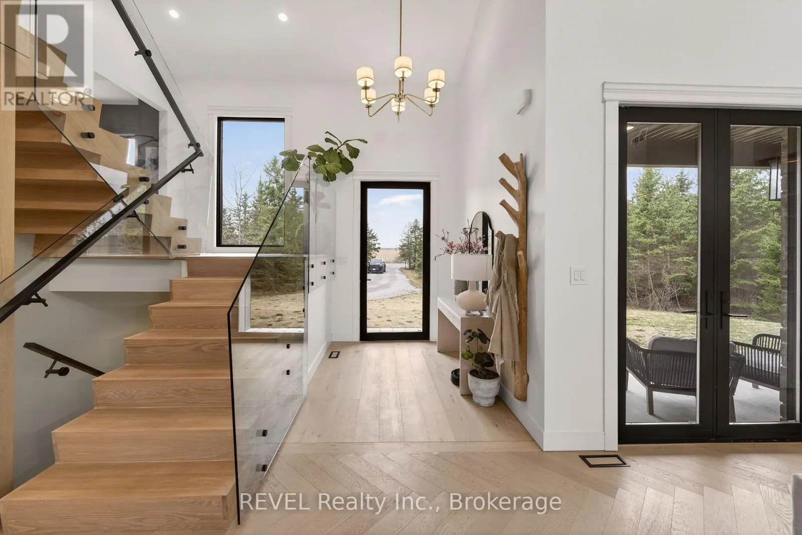 Set on nearly six scenic acres, this newly built bungaloft (2024) offers an exceptional blend of thoughtful design, quality finishes, and peaceful surroundings. Bright, open-concept living spaces are highlighted by soaring ceilings, oversized windows, and a seamless flow ideal for both everyday living and entertaining. The main living area features rich hardwood flooring, a striking gas fireplace with custom built-ins,