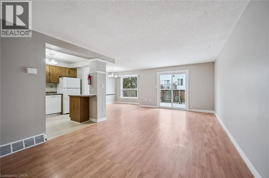 Welcome first time home buyers and investors. This 3-bedroom, 2 Bathroom end unit condo is located just minutes to shopping, Conestoga College, and the 401. A spacious main floor, open concept living and dinning room with an upper level deck looking down to fenced in back yard. Basement has a large area for storage and a finished family room.