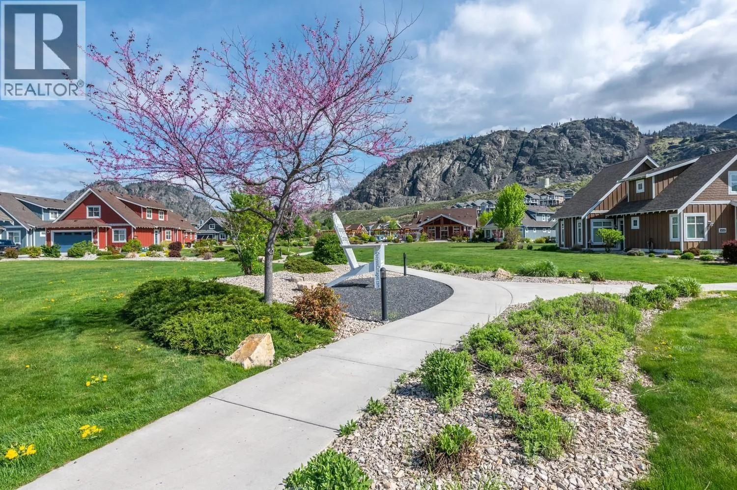 The Cottages on Osoyoos Lake – This beautiful freshly painted 5 bed & den home includes a tongue & groove vaulted ceiling, new water softener, new washer & dryer, new flooring & upgraded plumbing fixtures throughout, geothermal heating & cooling system, upgraded appliances & 2″” faux wood blinds 2 wine coolers & beverage center, covered patios on both levels with