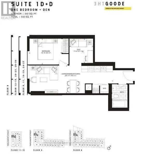 Experience elevated urban living at **35 Parliament Street**. This brand new 1+Den suite offers 542 sq ft of thoughtfully designed space, ready for immediate move-in. Perched on the 29th floor with a coveted southwest exposure, the unit enjoys unobstructed city views, with glimpses of the lake and the iconic CN Tower. The open-concept layout features upgraded high-end finishes throughout, a