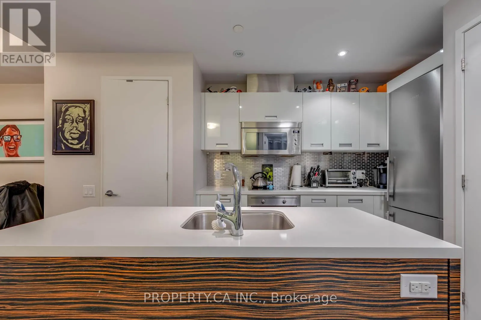 1Bed Design W/ Office or Dining Room Nook. Open Concept Layout Feels Larger Than Expected. European Style Kitchen, S/S Appliances & Island. This Unit Features 9Ft Ceilings, Hardwood Floors Throughout, West Exposure Offering Tons Of Natural Light. Steps To Lake, Humber Bay Park, 24Hr Metro, LCBO, Shoppers, Cafes, Restos, Starbucks, Public Transit, Qew And Much More. Parking & 1 Locker.