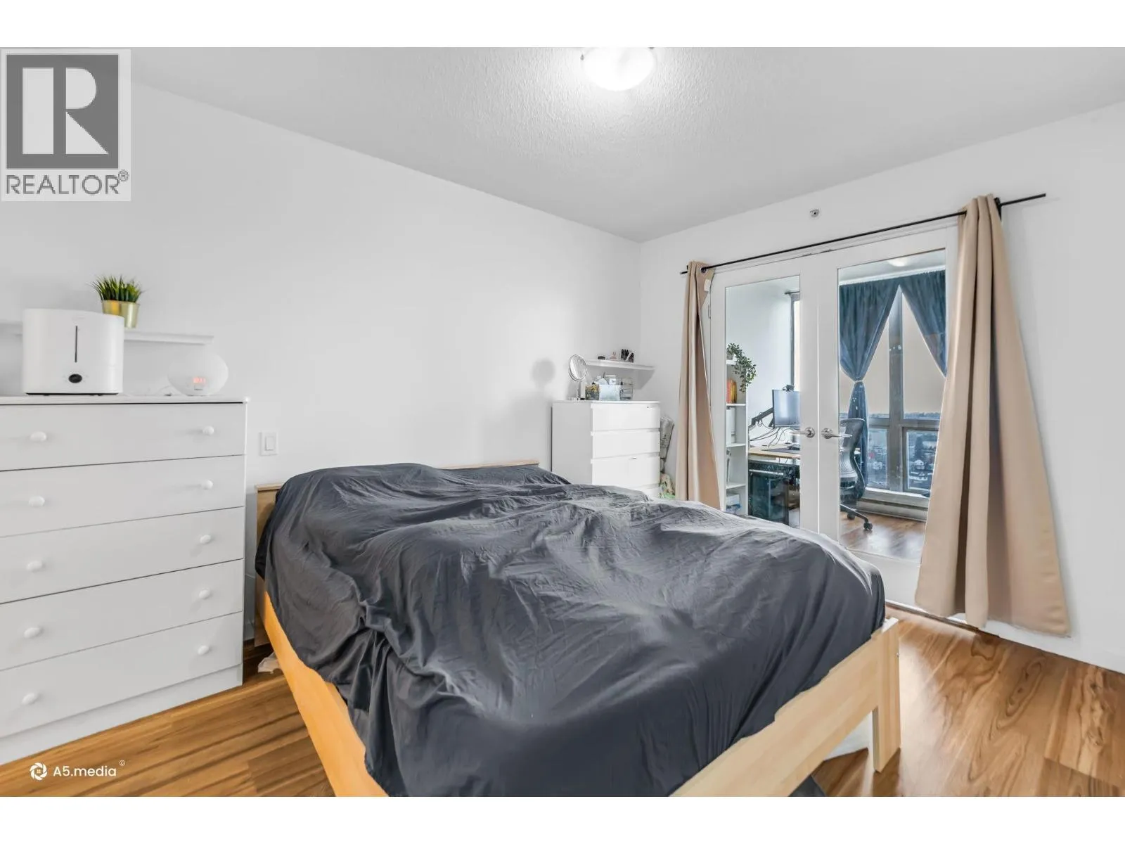 Penthouse living with stunning panoramic views of downtown, the islands, and the Northshore mountains. This 1-bedroom plus den home features a den with French doors for added privacy. Enjoy a spacious balcony and floor-to-ceiling windows that fill the unit with natural light. The home offers a cheater ensuite, a well-sized kitchen with plenty of cabinetry, and a highly functional, open