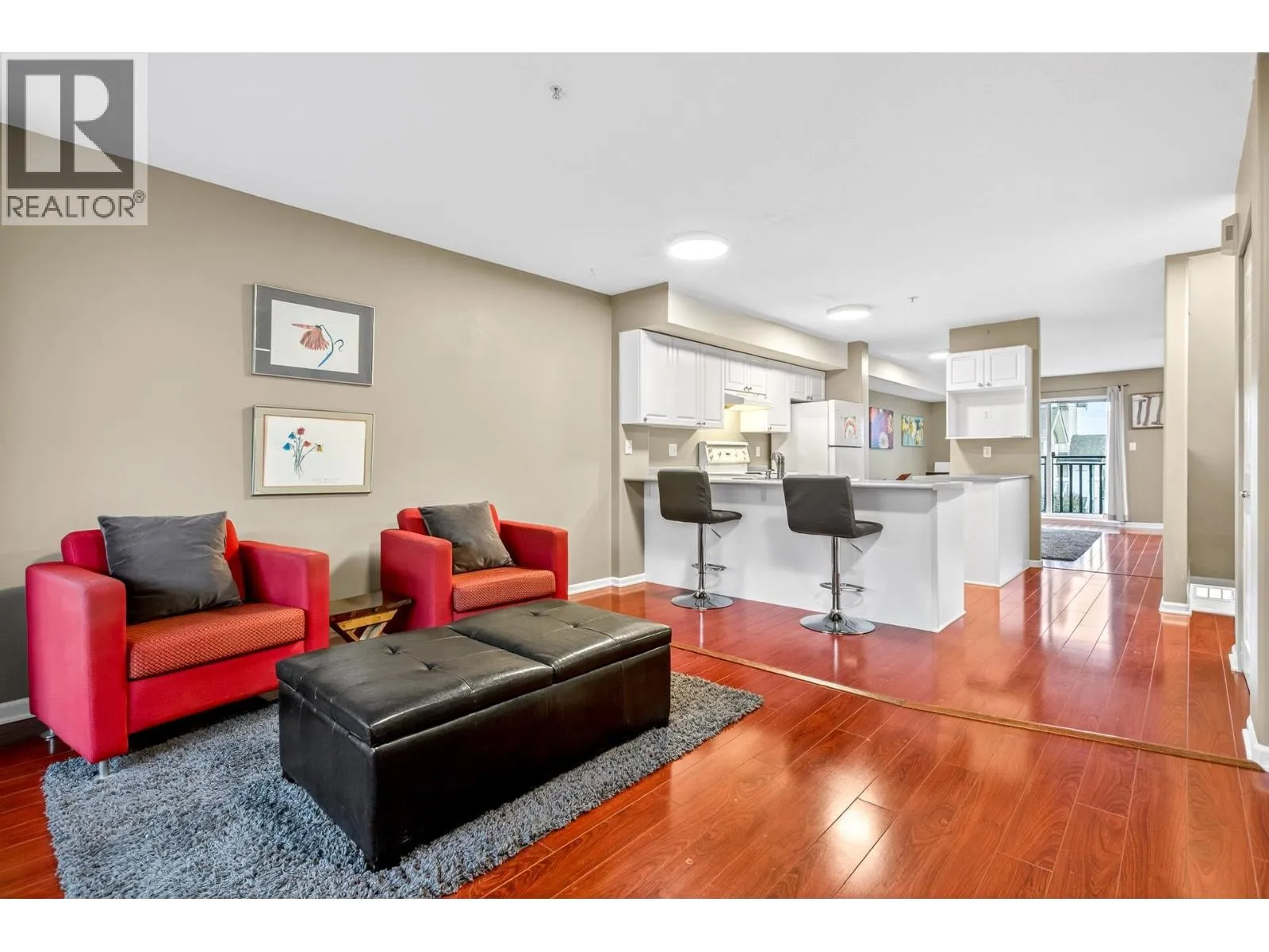 Welcome to Riverwood Terrace in desirable Riverwood, Port Coquitlam! This spacious end-unit townhouse offers nearly 1,300 square ft with a functional 2 bed, 2 bath layout perfect for families, downsizers, or investors. Bright main floor with updated laminate flooring, cosy gas fireplace, and walk-out access to both balcony and private patio. Rare 3 car parking provides exceptional value. Located in