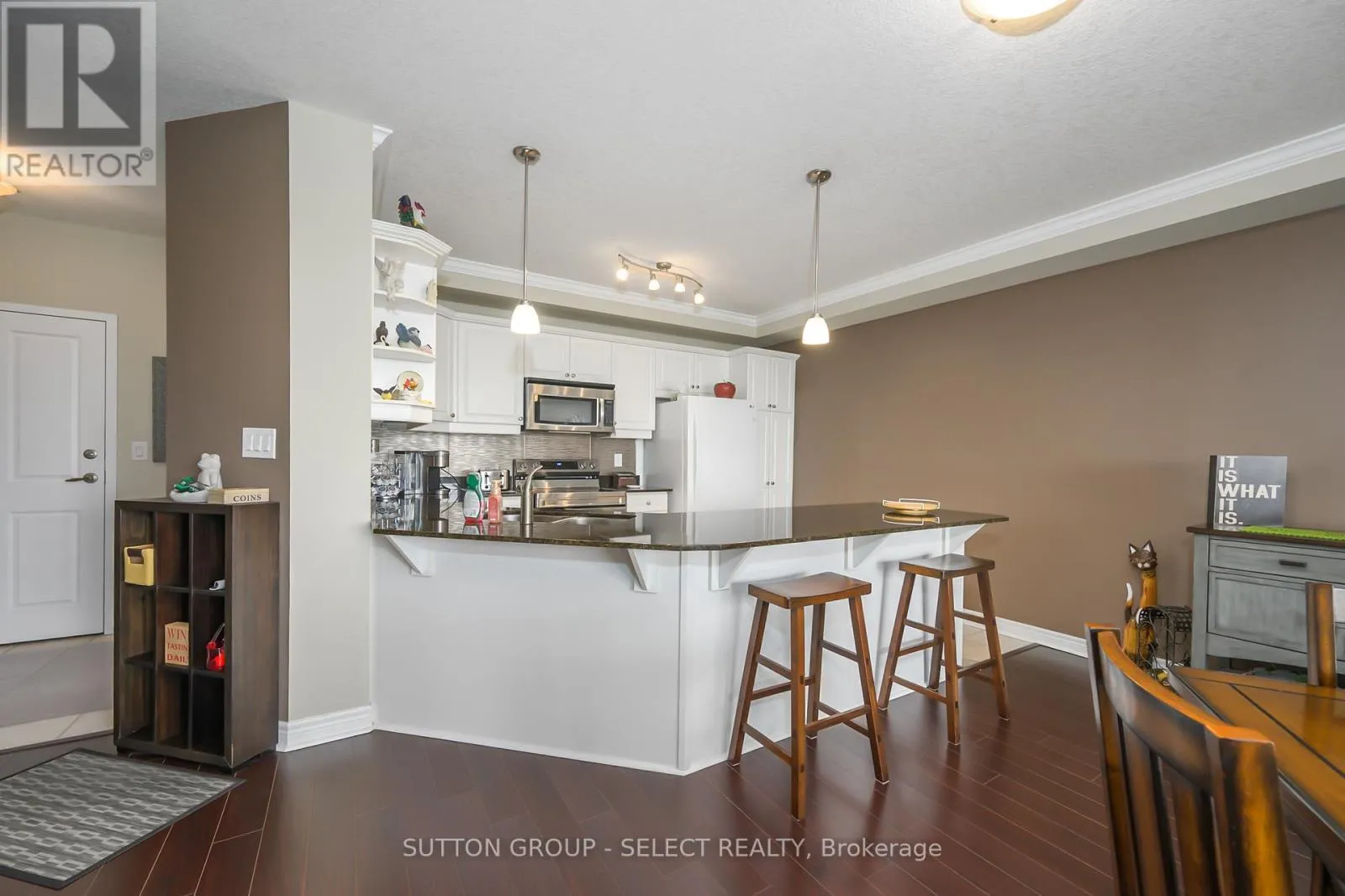 Look no further then this well maintained, spacious 2 bedroom plus a den unit with beautiful views from the 6th floor balcony. This contemporary designed unit features a large wrap around island perfect for entertaining, modern white kitchen with granite countertops wood laminate flooring, main floor laundry, a separate room that is great as a office or pantry, crown moulding,