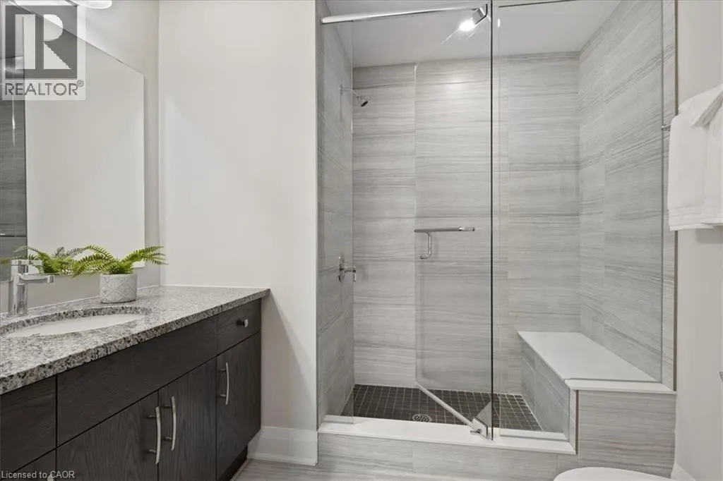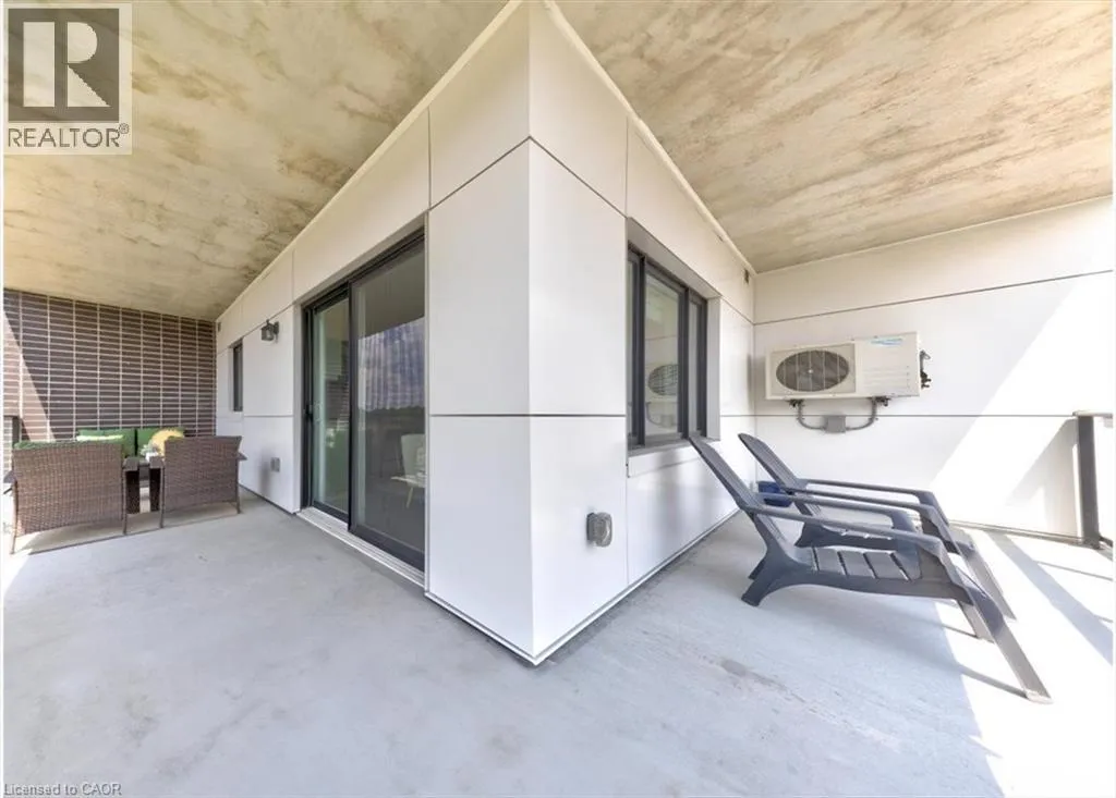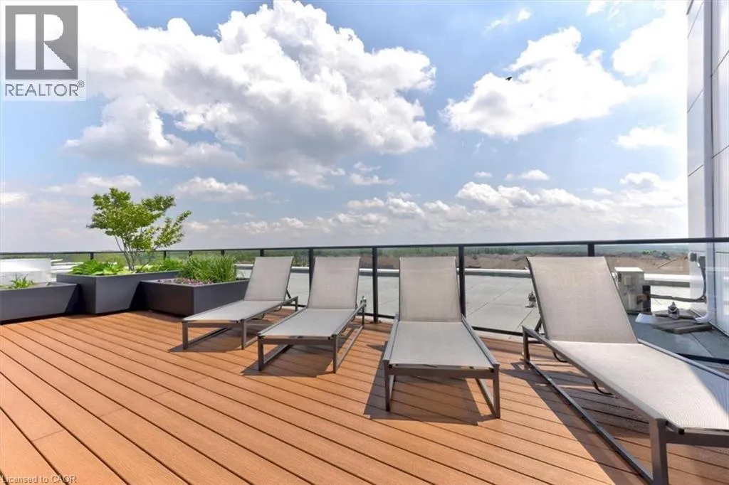 storage—perfect for everyday cooking or entertaining guests. The sun-filled living area offers engineered hardwood flooring, upgraded lighting, and direct access to an expansive wraparound balcony. With two separate seating areas and wide open panoramic views, it’s an ideal spot to unwind with a drink after a long day. The spacious primary bedroom includes two closets and a private ensuite featuring a spa-inspired glass shower with built-in bench. The second bedroom is generously sized and filled with natural light, making it perfect for guests, a home office, or additional living space. Both bathrooms are finished with granite countertops and upgraded fixtures. This unit also includes a convenient drive-in underground parking space with a large private storage locker located directly in front, making access simple and practical. Additional features include in-suite laundry, water heater, and water softener. Residents enjoy access to an incredible rooftop terrace complete with planter gardens, comfortable seating areas, a fire table, communal BBQ, and stunning views—a wonderful place to gather with friends or relax outdoors. Fantastic location close to Rim Park, Grey Silo Golf Club, BlackBerry, scenic walking and biking trails, Brown’s Social House, Conestoga Mall, and the St. Jacobs Farmers’ Market. Experience the ease and comfort of condo living in one of Waterloo’s most desirable communities. (id:62650)