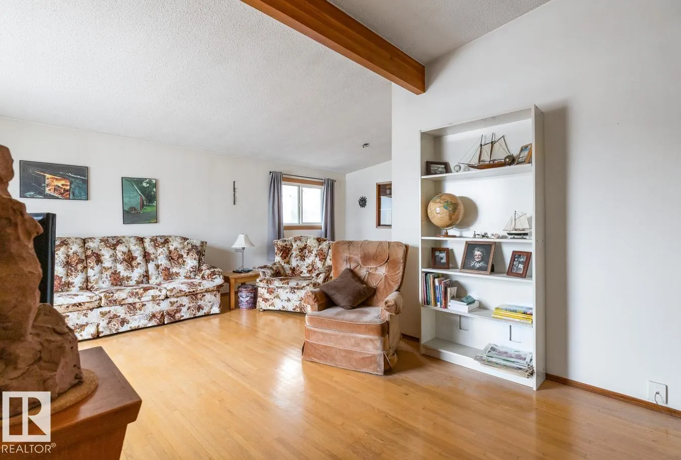 A true Kensington classic! This 1,100 sq. ft. open-beam bungalow features 3 bedrooms and a second-generation eat-in kitchen. The spacious living and dining area includes a built-in cabinet, and all main floor rooms boast vaulted ceilings. The basement remains unfinished, offering plenty of potential for customization. Recent upgrades include fiberglass shingles, vinyl siding on the front exterior, updated main floor
