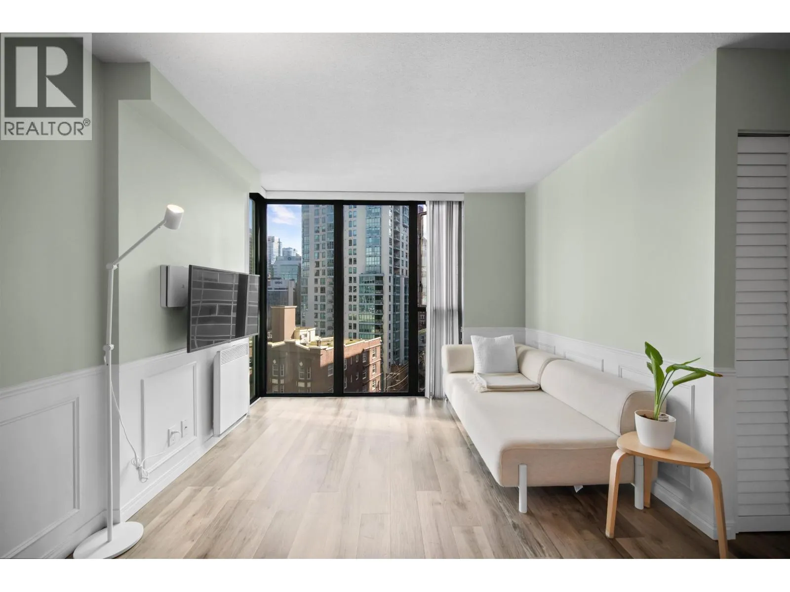 Welcome to designer living in Coal Harbour at THE POINTE, by Bing Thom Architects. Bright & beautiful doesn’t even begin to describe this end unit, boasting gorgeous peak-a-boo water & mountain views. It comes complete with high-end laminate flooring throughout, neutral tones & accent wainscoting in the living area. You will appreciate the open concept kitchen, with ample seating at