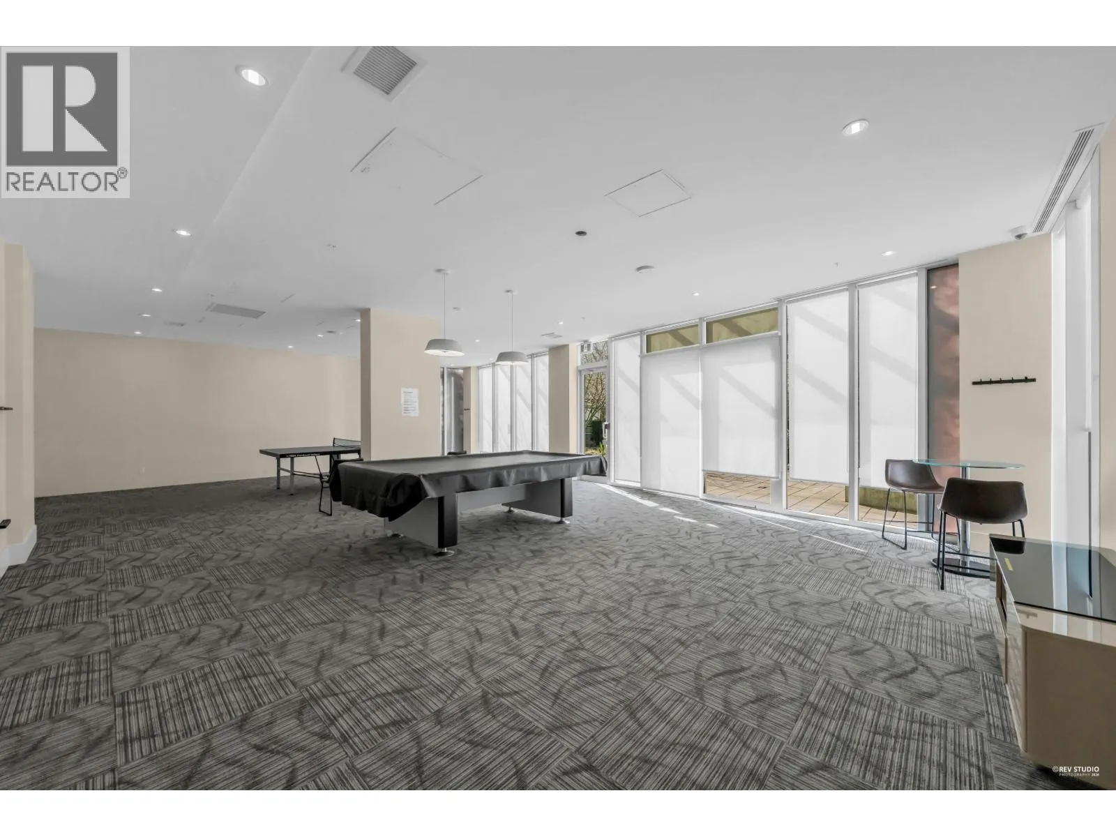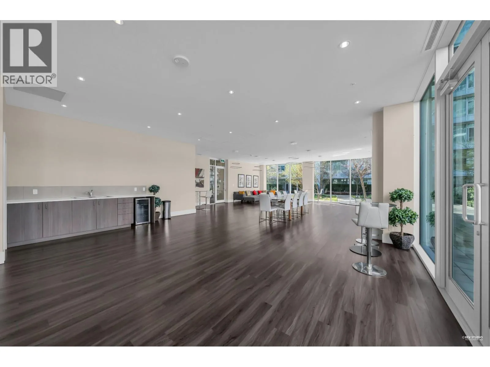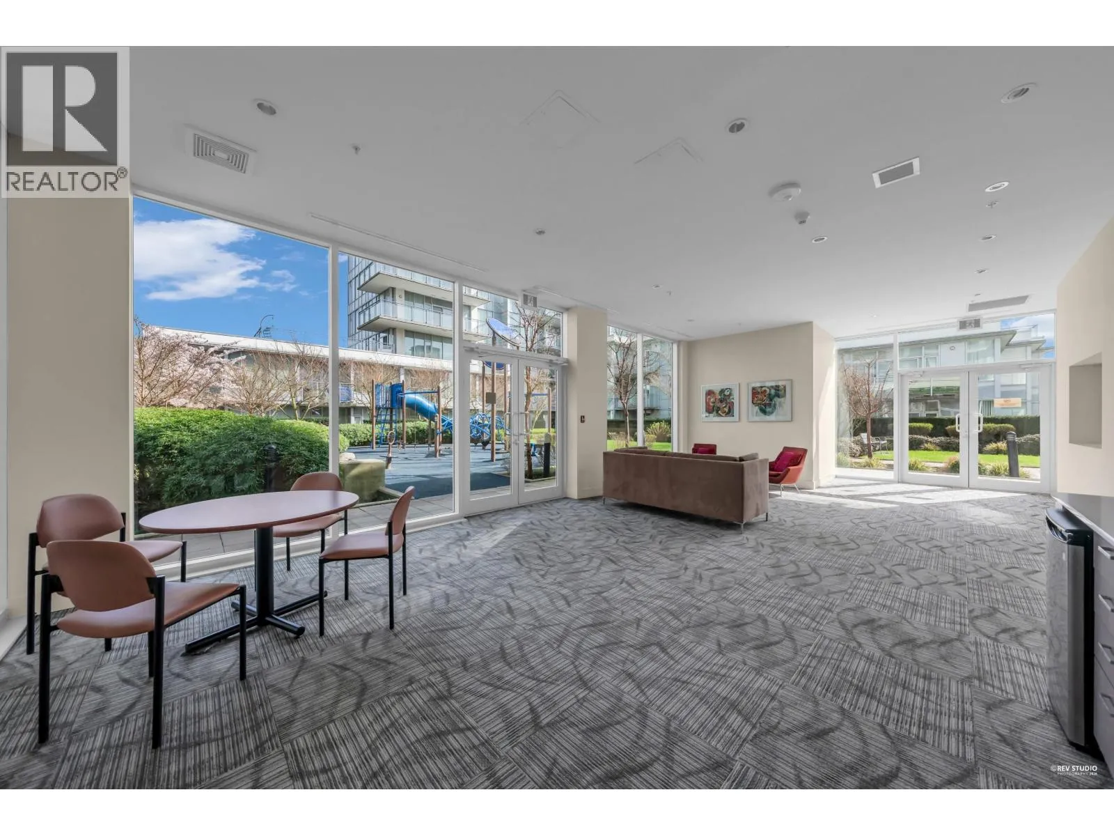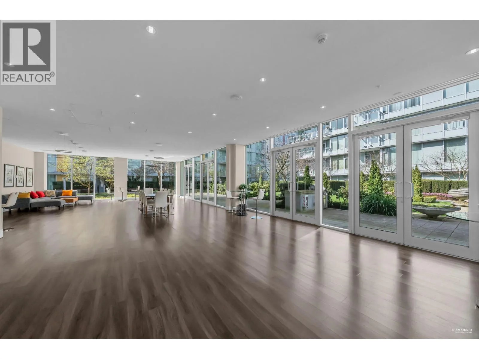 Pinnacle Living at Capstan Village – Concrete Construction! This bright SOUTH facing 583 square ft 1 bed & den apartment features an indoor pool, hot tub, sauna, steam room, exercise lounge, golf simulator, yoga room, mah-jong room, theatre and party room. Luxury finishing with 9′ ceiling, central A/C & heating, quartz counters. Includes one parking stall and bicycle storage. Convenient