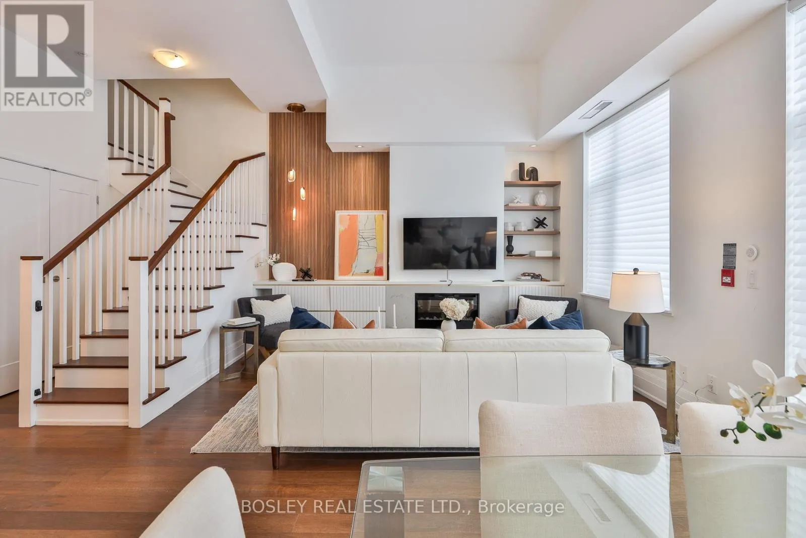 Welcome to The Upper House, a luxury townhouse boutique condo offering exquisite style & an space in family-friendly Leaside. This 2-storey home features 1462 SF of interior living plus a 275 SF terrace with BBQ gas line, for a total of 1737 SF. The open concept main floor impresses with soaring 12-ft smooth ceilings, custom Hunter Douglas remote controlled blinds