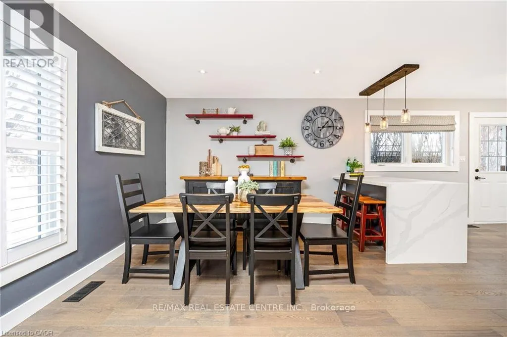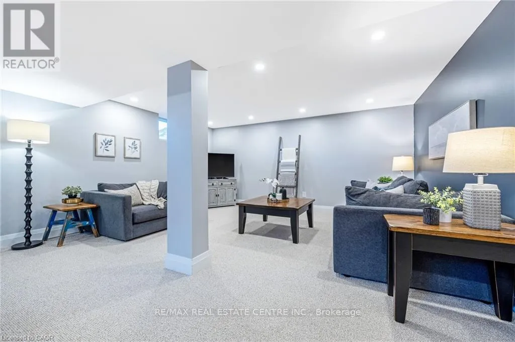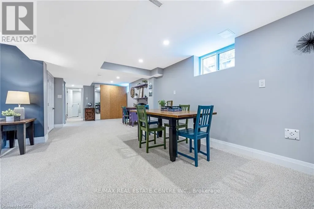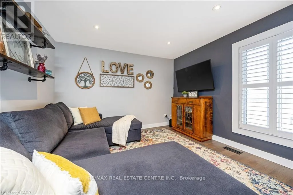 with California shutters, a dining room and stunning kitchen with under cabinet lighting, stainless steel appliances, island with breakfast bar, waterfall quartz counter, tile backsplash and walkout to the private yard. There are 3 bedrooms and a renovated 3-pc bathroom with separate glass shower on this level. The FULLY FINISHED BASEMENT features wide open space with massive windows to let in the natural light, new carpeting in the recreation room (2025), laundry, FOURTH BEDROOM and updated 4-pc bathroom. There is a large storage room, pot lights and a bonus 220VAC electrical connection. The rear yard has so much space for the KIDS to just ROAM, along with a massive new covered porch and concrete patio, gas BBQ hook up, two sheds and a hot tub. Additional features include: wide plank hardwood flooring throughout the main floor, new windows, new fencing on east and south sides of yard, PARKING for FIVE CARS (one in garage and four in driveway), access to backyard from garage. Close to all amenities – walk to public and Catholic schools, parks, Mill Pond, Farmers Market, Coffee, Restaurants, Transit and Milton’s vibrant downtown. This impeccably maintained home has it ALL … Simply Move In and ENJOY! *Please see attached for a full list of features and upgrades. ** Carpet in basement bedroom will be replaced before closing. *** OPEN HOUSES: SAT & SUN, MARCH 28 and 29 from 2 – 4 pm (id:62650)