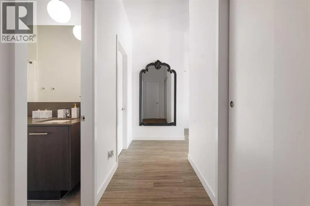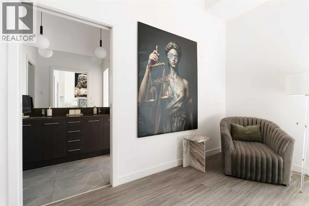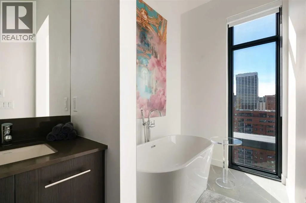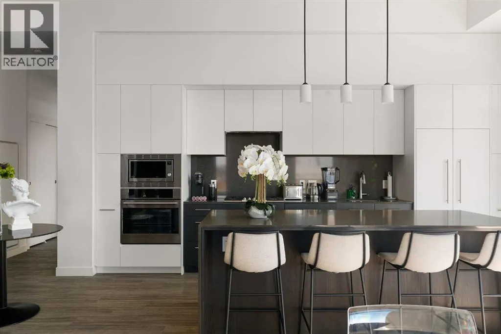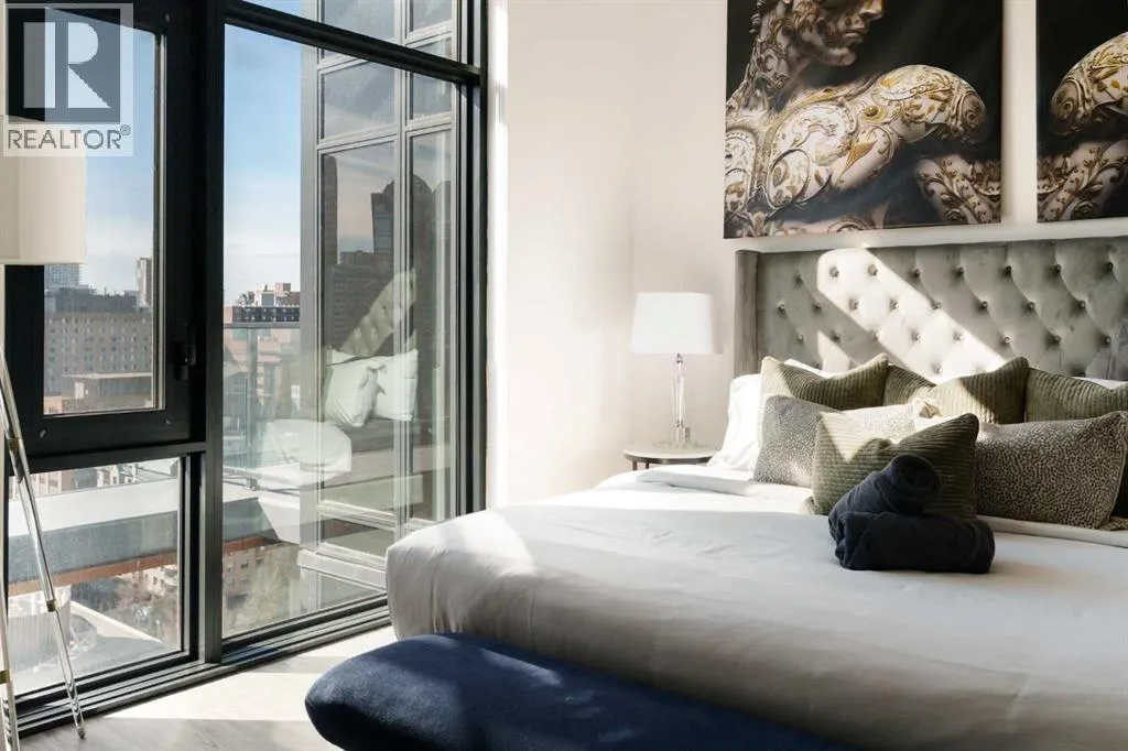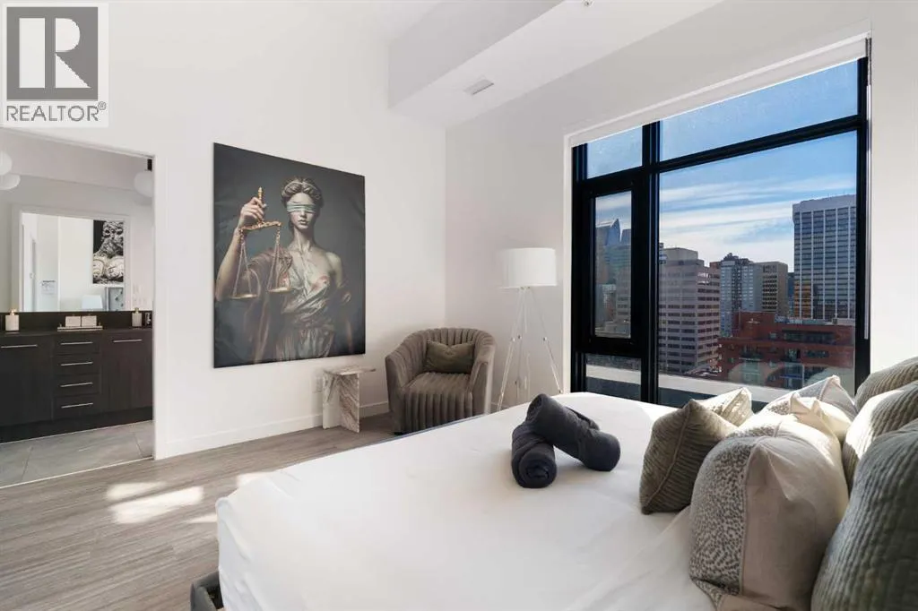 Experience elevated urban living in this luxury penthouse in Downtown Calgary, offering a rare combination of breathtaking views, modern design, and premium finishes. This exceptional 2 bedroom + den, 2 bathroom condo is thoughtfully designed with a seamless open-concept layout that connects the living, dining, and kitchen spaces—perfect for both entertaining and everyday living.The contemporary kitchen features sleek finishes and