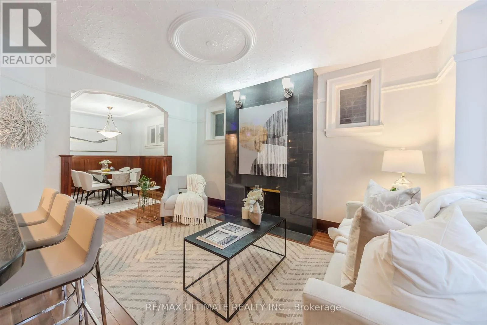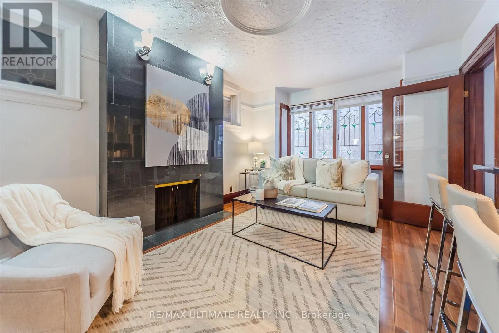 Welcome to this beautifully renovated two-bedroom bungalow, where timeless character blends seamlessly with modern conveniences. The main floor is enhanced by leaded glass windows, wainscoting, and rich wood trim, and is complemented by a stylishly, renovated kitchen complete with granite countertops, a breakfast bar, and stainless-steel appliances. The warm and inviting living room features a wood-burning fireplace and bay window,