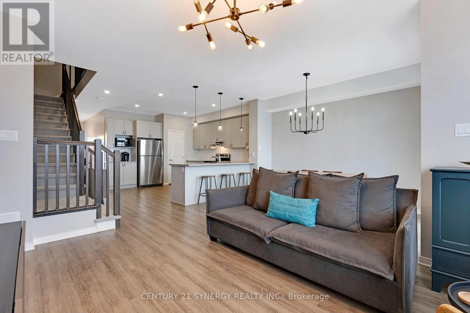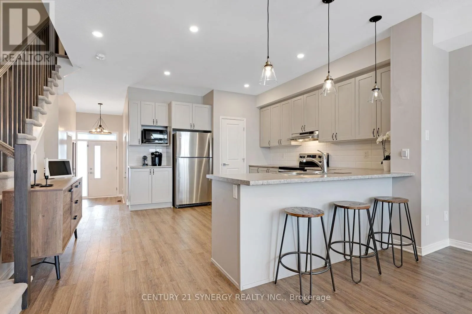 This beautiful 3-bedroom, 2.5-bath townhome immediately impresses with its clean, modern aesthetic and evident pride of ownership. Inside, you’re greeted by a bright and inviting atmosphere, enhanced by the large picture windows and a functional layout The modern kitchen features light shaker-style cabinetry, subway tile backsplash, stainless steel appliances and a pantry tucked away in the corner .The L-shaped