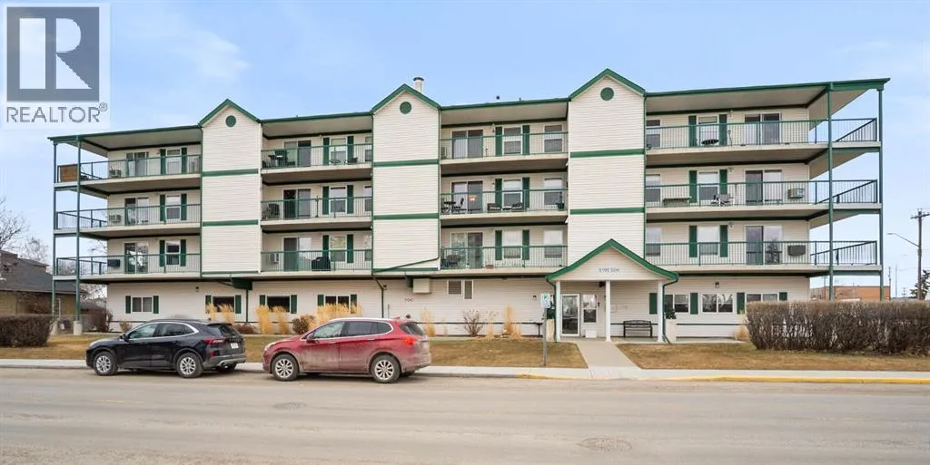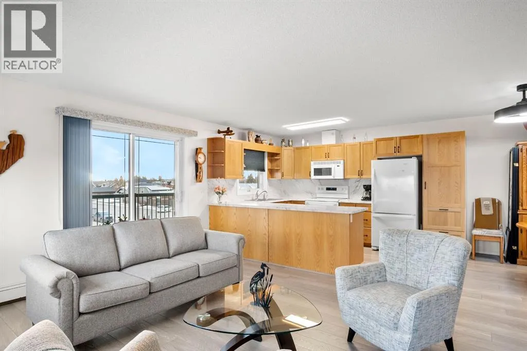Come home to this 55+, bright, condo home located at Park Terrace in Olds. This corner unit, with a generous, open concept, 2 bdrm, 2 bath layout features numerous recent upgrades. Upgrades include some fresh paint, new lighting, new washer/dryer, dishwasher and stove, as well as a great addition of an in-kitchen pantry cupboard. Enjoy your morning coffee