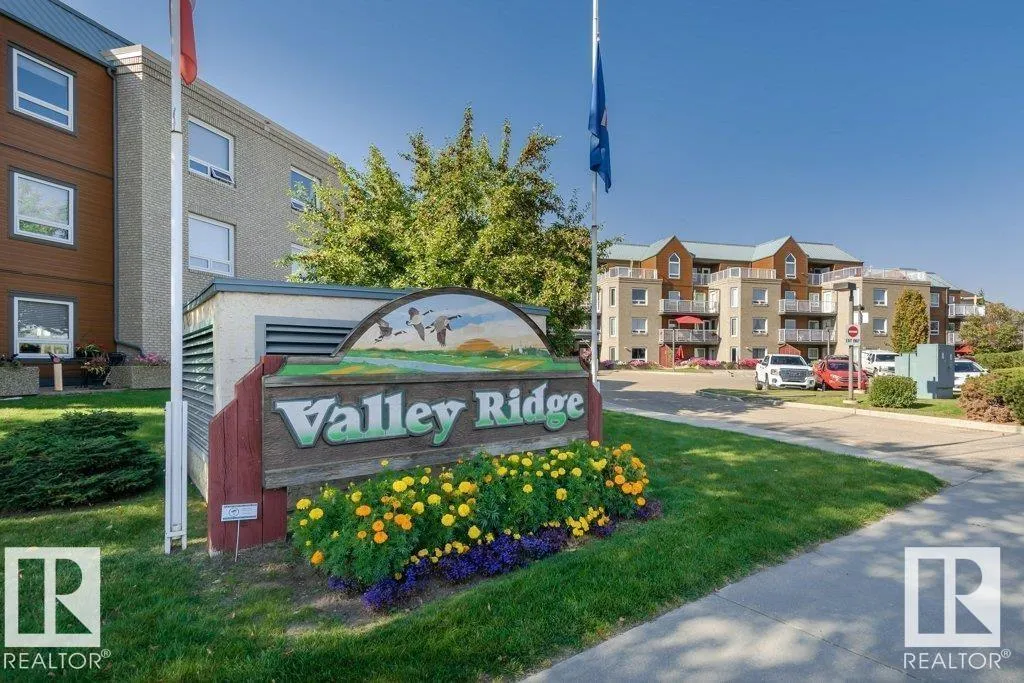 Welcome to Valley Ridge—an exceptional 50+ community offering comfort, convenience, and lifestyle. This top-floor 2 bedroom, 1 bath condo features a rare wrap-around deck with unobstructed views of the North Saskatchewan River Valley—perfect for enjoying peaceful mornings and stunning sunsets. Bright and move-in ready, this home includes all major appliances, in-suite laundry, and a spacious storage room. The self-managed building