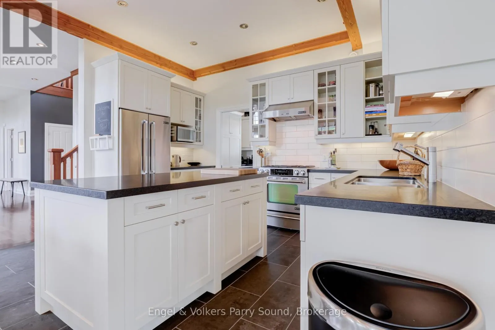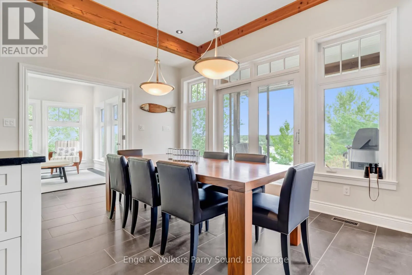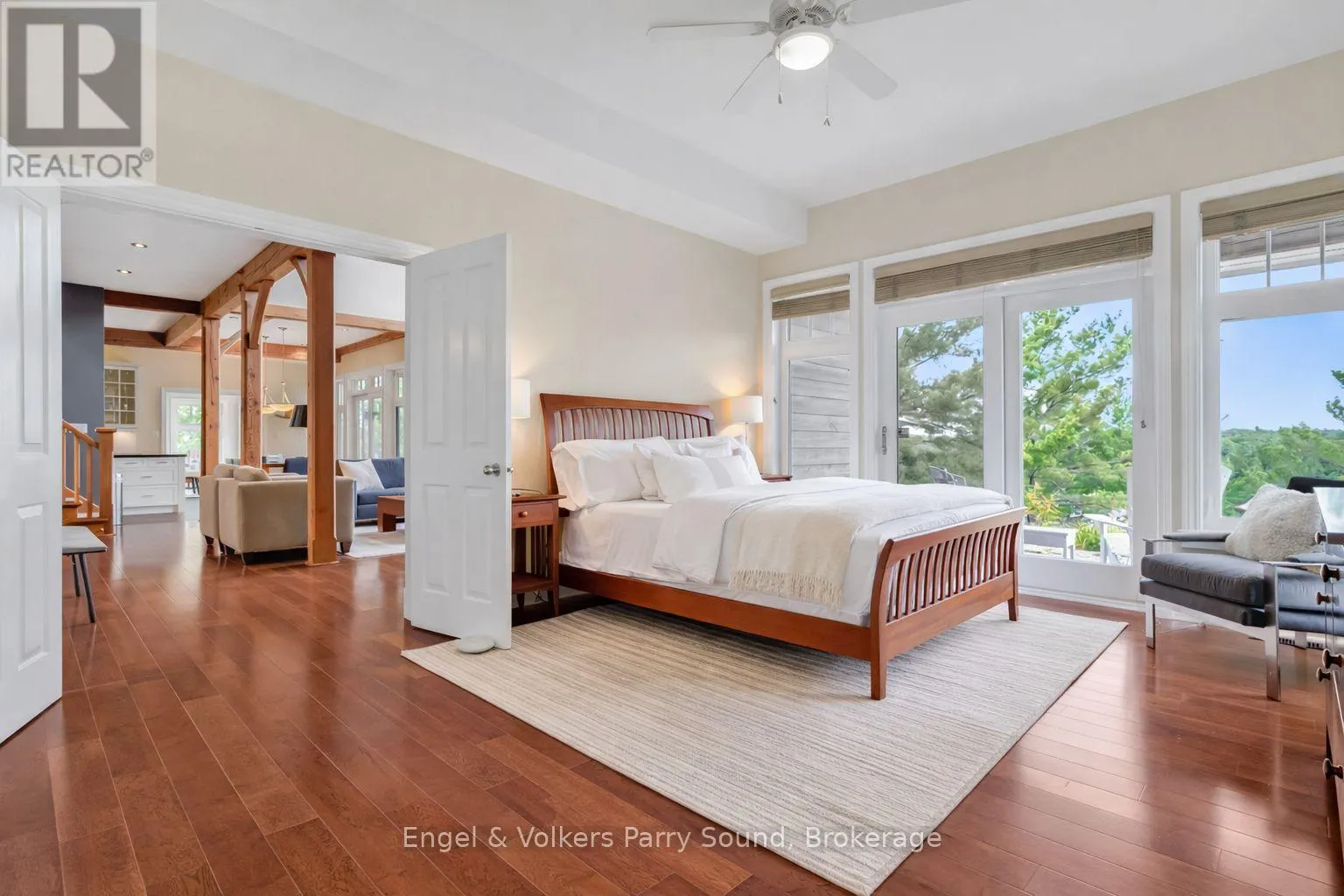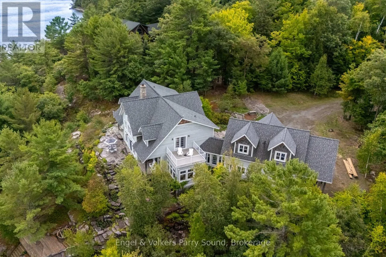 Prestigious Year-Round Georgian Bay Estate | Perched atop a sheltered granite outcropping, this custom Georgian Bay masterpiece offers over 3,600 SF of refined living space where timeless craftsmanship meets modern luxury. Designed with a timber frame & accented by soaring post-and-beam construction, the home commands sweeping views of tranquil Carling Bay; an address synonymous with prestige and privacy. Set on