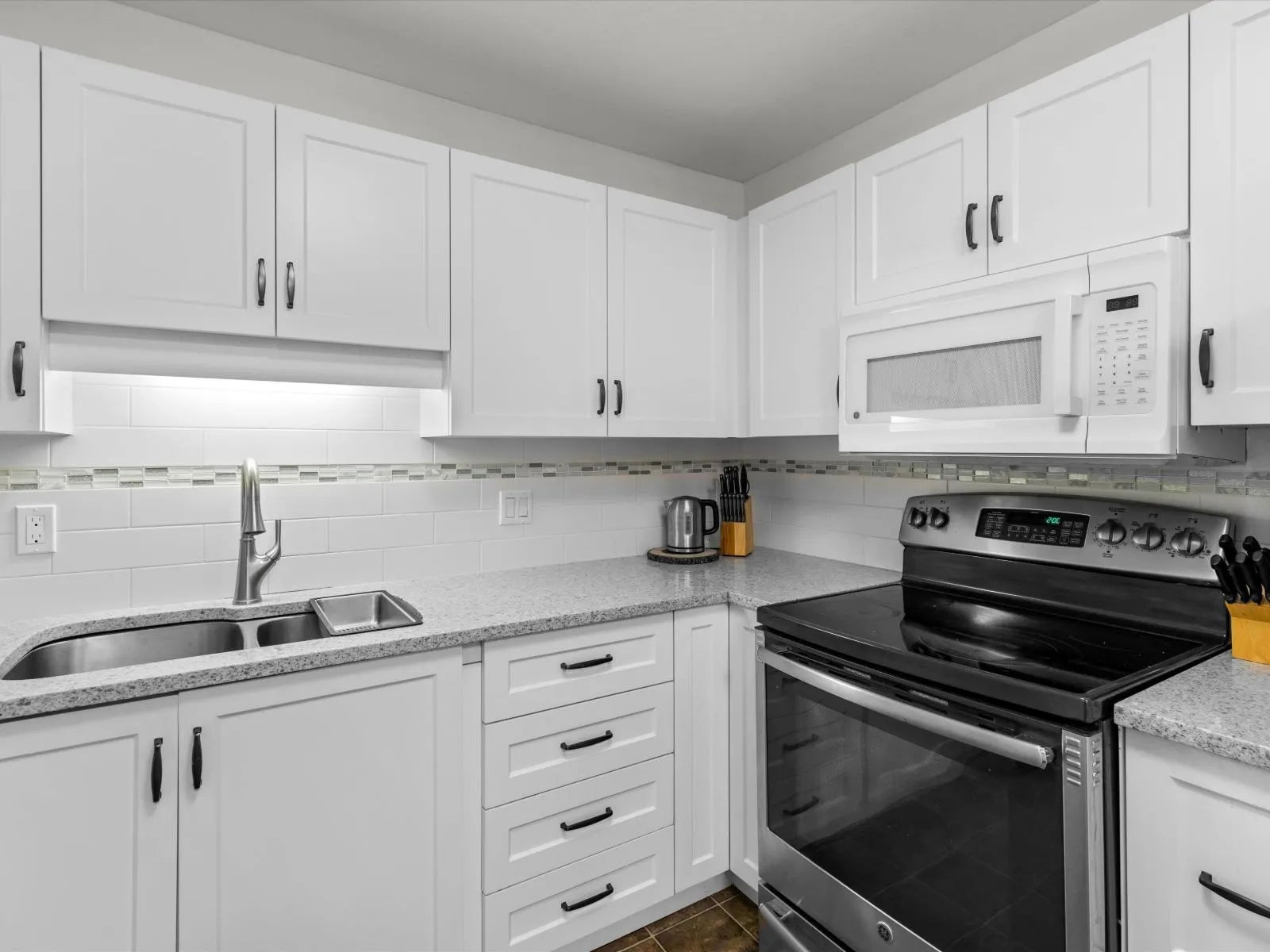 This fabulous home backs onto GREEN SPACE, with 1,100+ Sq Ft and 3 bedrooms! Spacious and bright, this well-appointed condo offers over 1,100 sq ft of comfortable living. The spacious 3 bedrooms are complemented by 2 full bathrooms. The updated kitchen features white cabinetry and quartz countertops, while low-maintenance laminate flooring flows throughout. Enjoy BBQs on your generous balcony overlooking