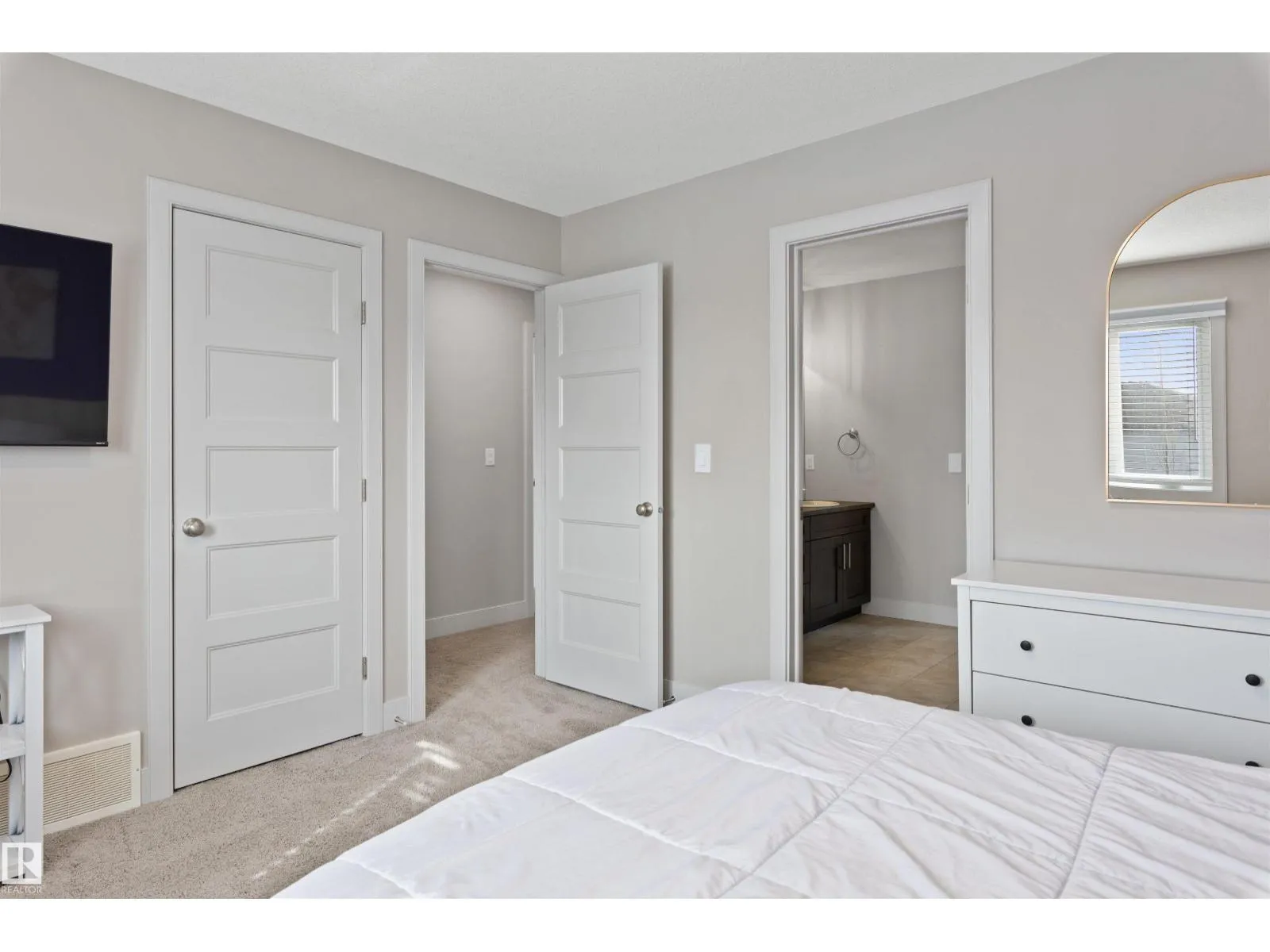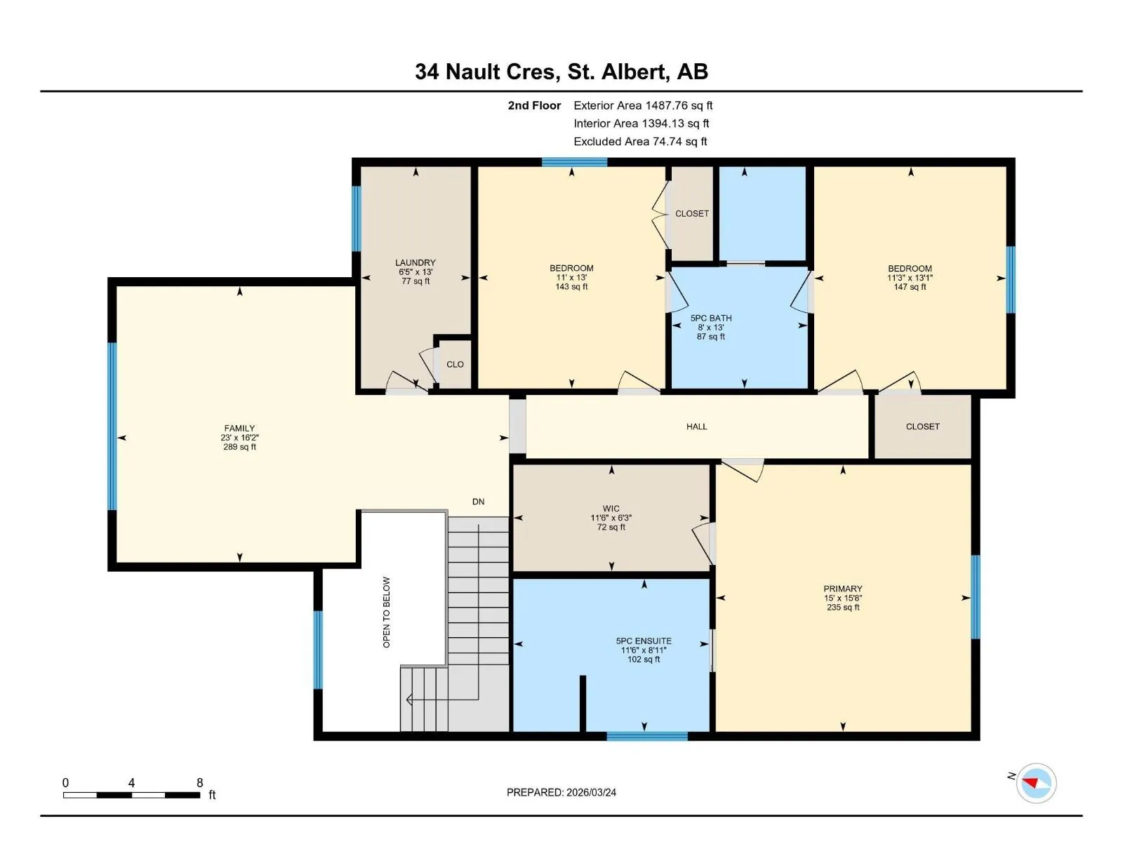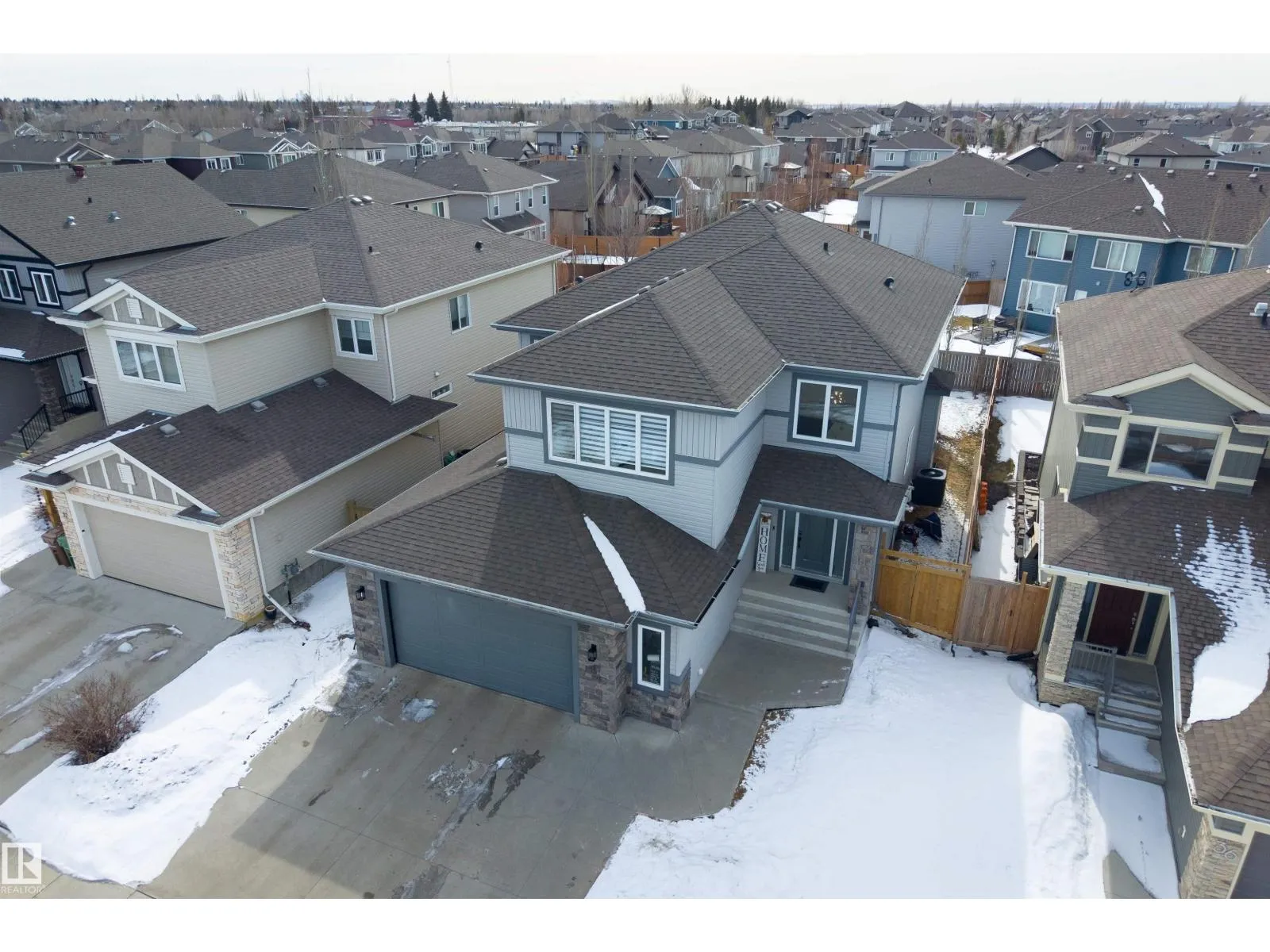 On a crescent in North Ridge sits this spacious 2 storey home w/ over 2800 sqft above grade. The entrance welcomes guests w/ tile flooring & a soaring, 2 storey ceiling. The main floor has a flex room w/ French doors & hardwood flooring. The living room has huge windows overlooking the backyard & a gas f/p. The dining nook