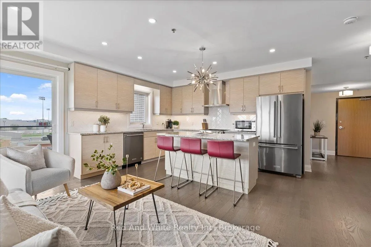 Beautiful 2-bedroom, 2-bath executive condo located in the highly sought-after Carriage Crossing neighbourhood. This bright corner unit, just 4 years old, enjoys west-facing exposure with no direct neighbouring views, allowing for plenty of natural light throughout the day. The modern open-concept kitchen features quartz countertops, a stylish herringbone backsplash, under-cabinet lighting, a large island, stainless steel appliances, and plenty of