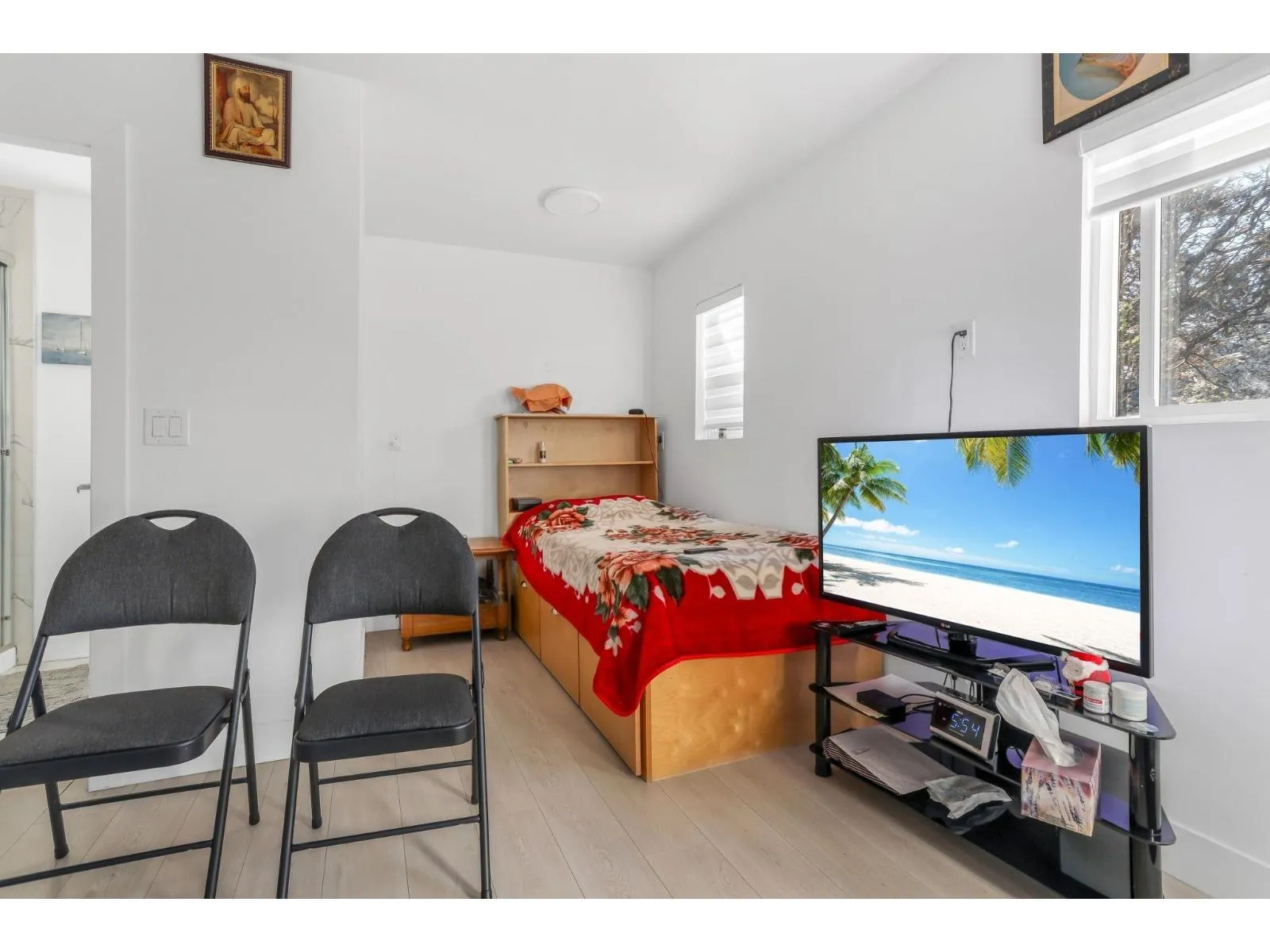 Discover this beautifully renovated ½ duplex on a 5,000 sq. ft.+ fully fenced lot, offering space and privacy with no strata fees. The main floor features a bright, open living room, a generous kitchen & pantry. This duplex offers four spacious bedrooms and three full bathrooms with a bachelor suite potential, Recent renovations include new flooring, kitchen upgrade, fresh paint,