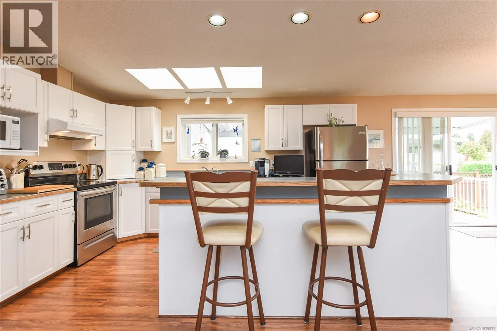 The only one with views of the Comox Glacier & Beaufort Range like this. A custom-upgraded home that is flooded with natural light from skylights and oversized windows, along with a gas fireplace, vaulted ceilings and ample counter space, this home feels spacious & inviting. Step out to a 300sqft covered deck and fully fenced yard with producing pear &