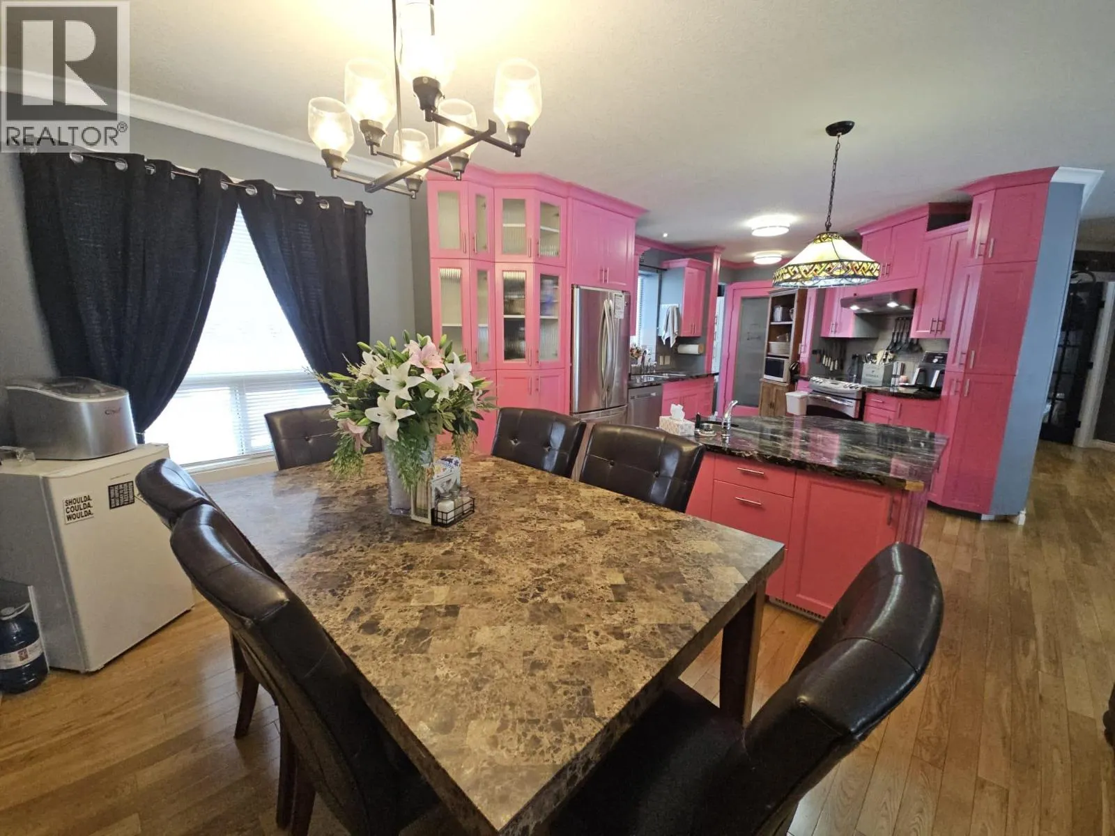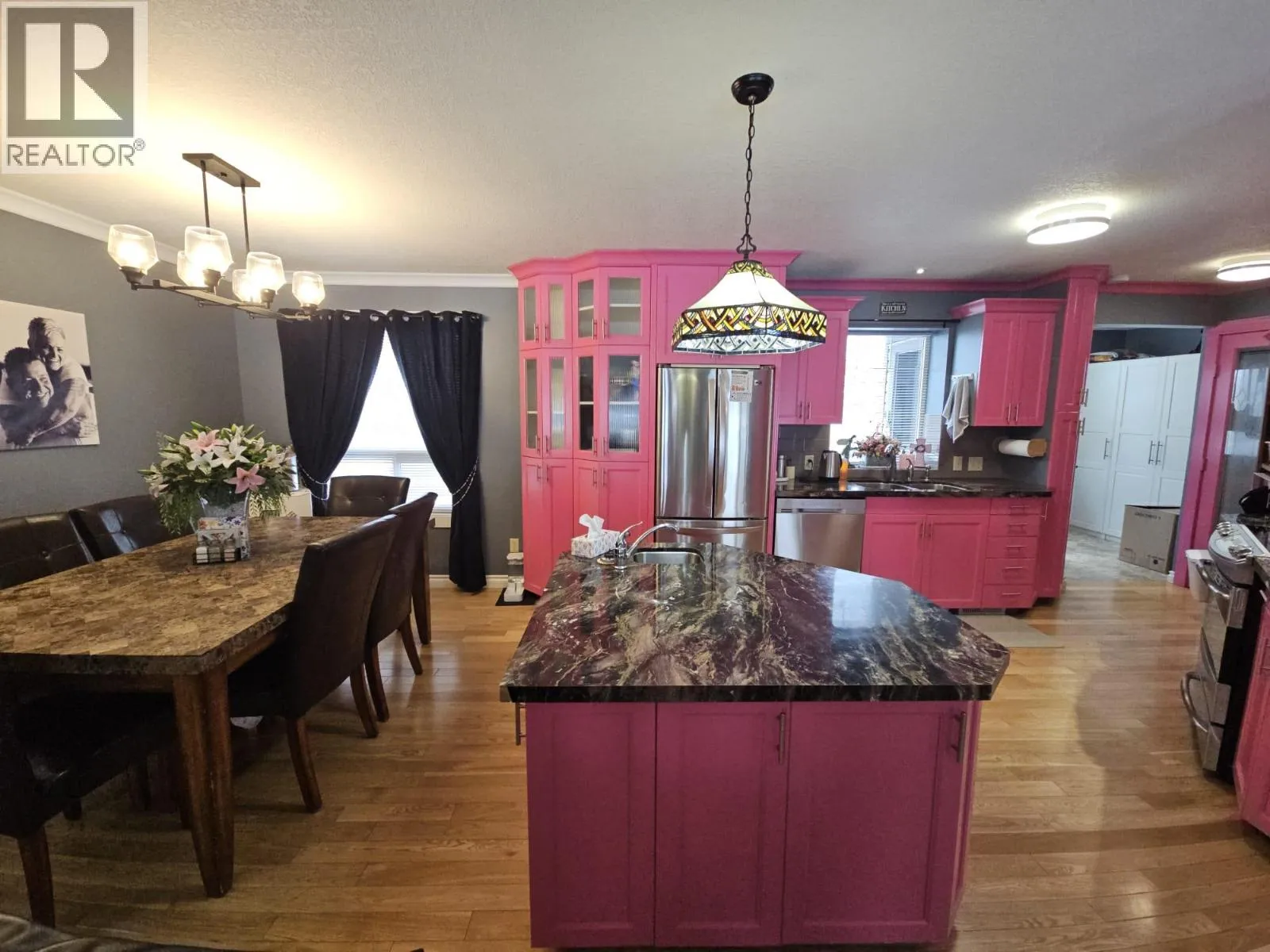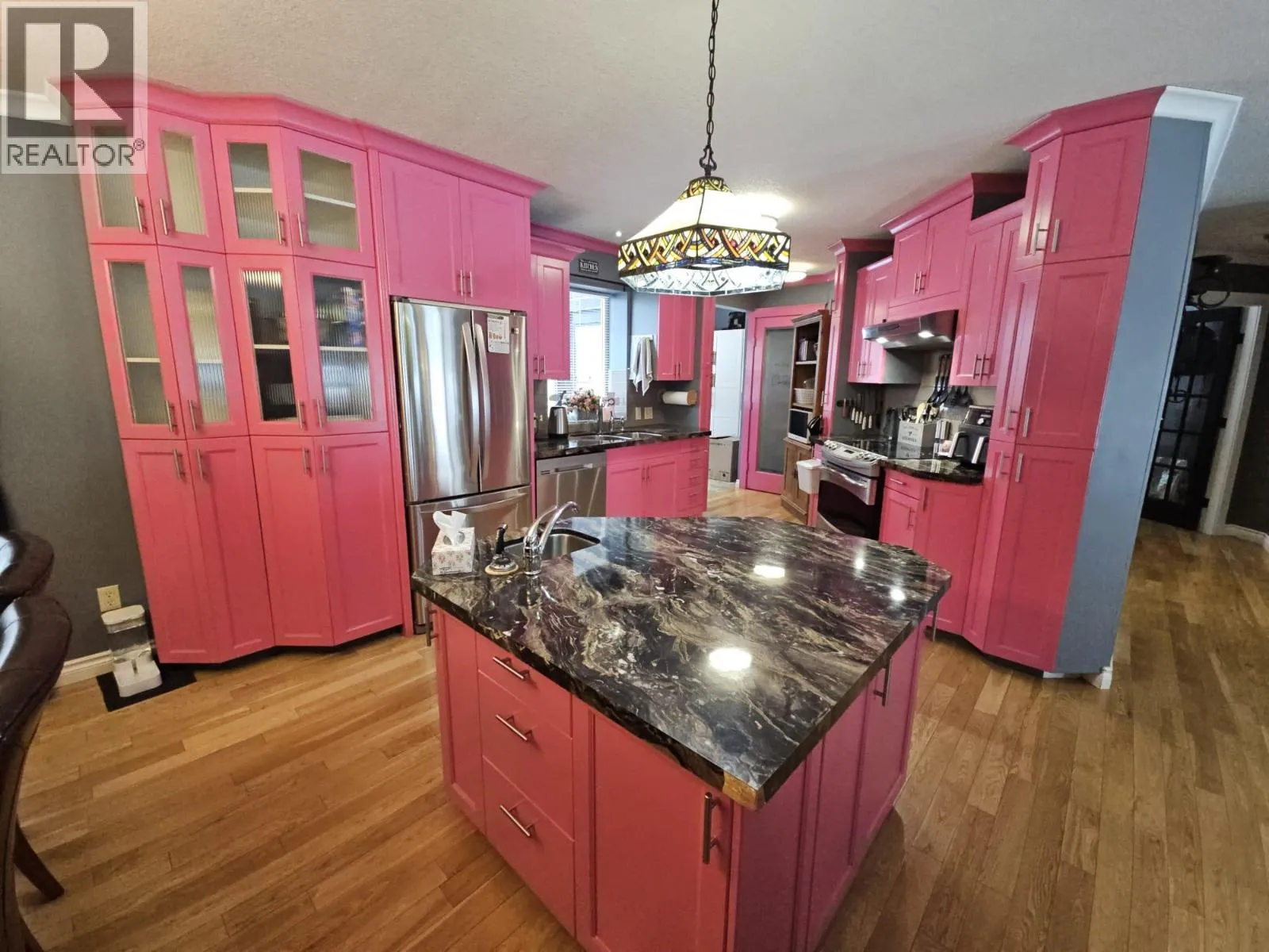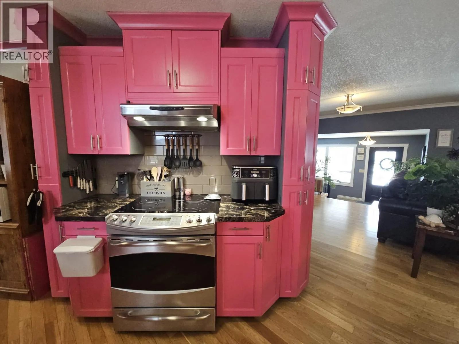 FALL IN LOVE THE MOMENT YOU WALK IN… Beautiful 4-bedroom, 2.5 bathr rancher with full basement, detached garage on large lot. Grand entry with porcelain tiles, great lighting, and rich hardwood floors immediately set a refined tone. Open-concept main living area is bright, welcoming, and ideal for both relaxed evenings and entertaining, with seamless flow between the living, dining, and