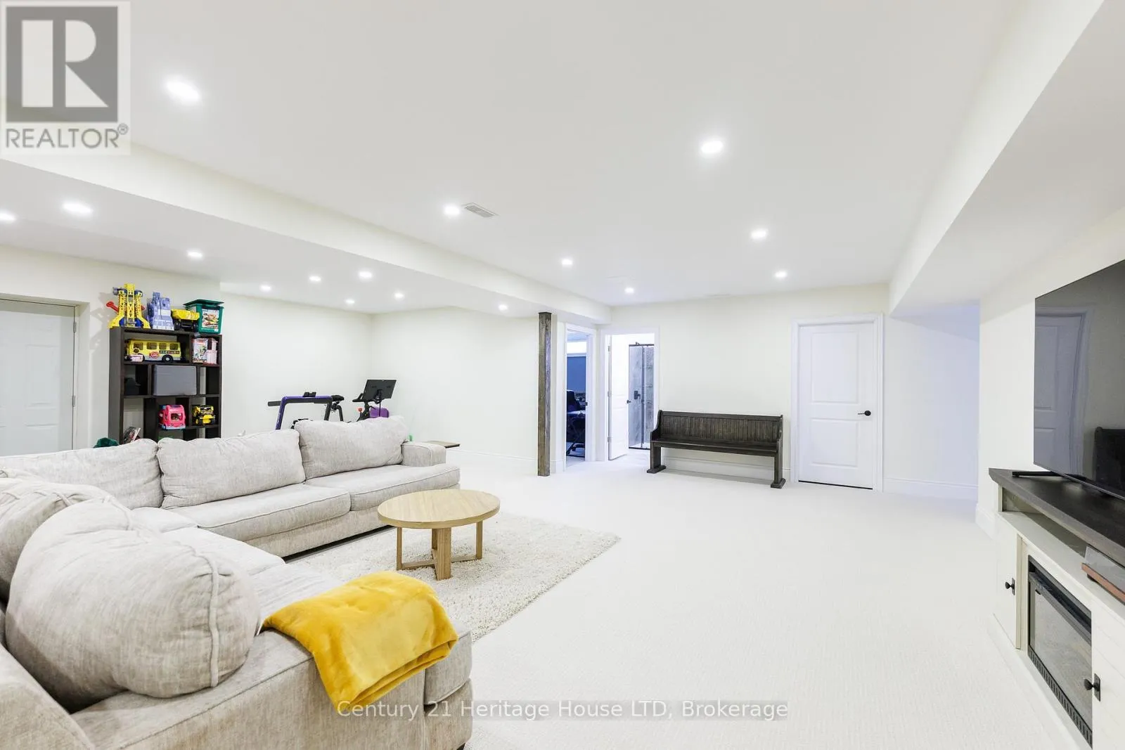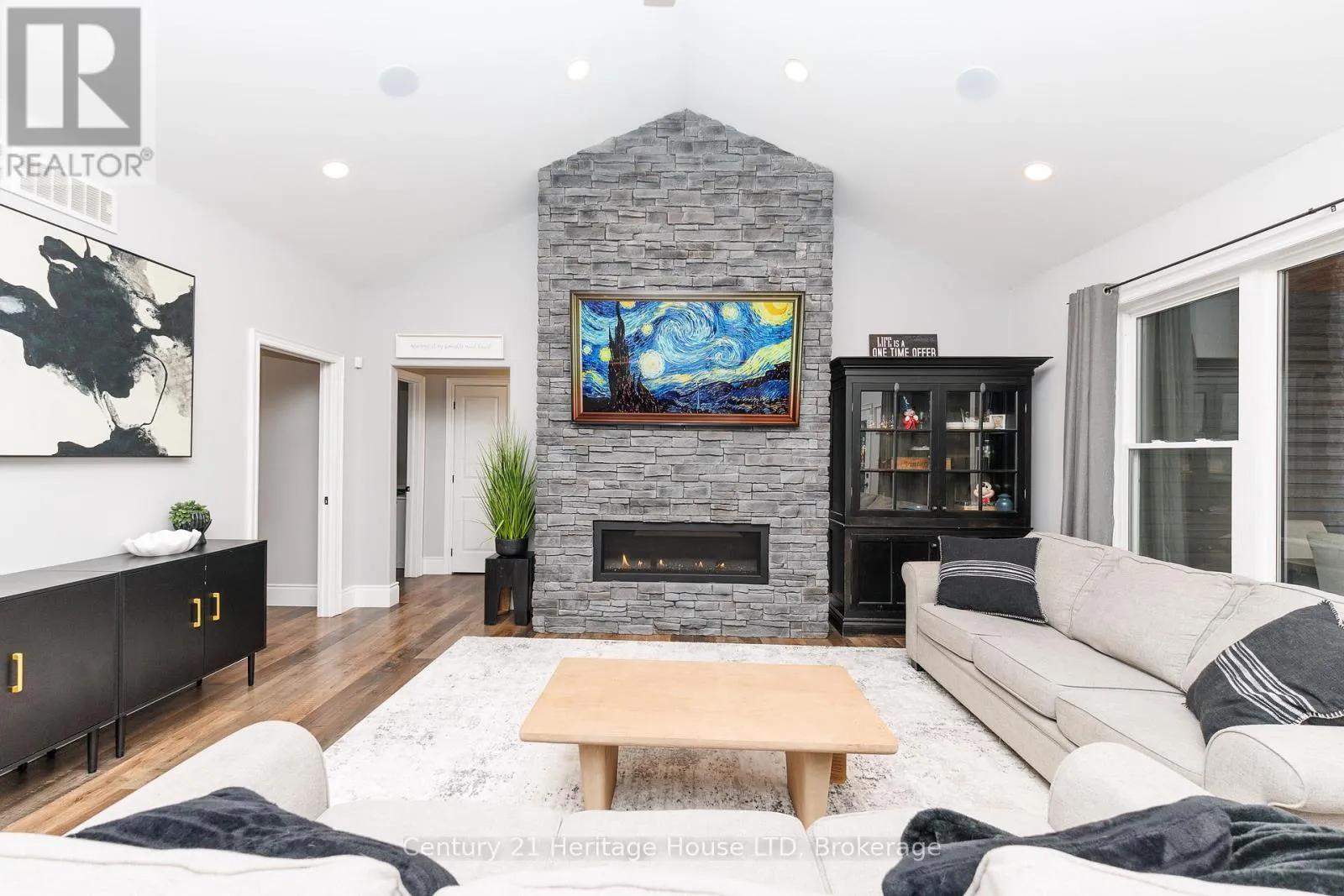 Country close to the City! This custom-built 2020 bungalow offers over 4,500 sq ft of professionally finished living space across two expansive levels, with a detached 30’x60′ shop, set on a private 7.5-acre country property just minutes from all town amenities and recreation opportunities. Designed for effortless main floor living, the home features an open-concept layout with vaulted ceilings in