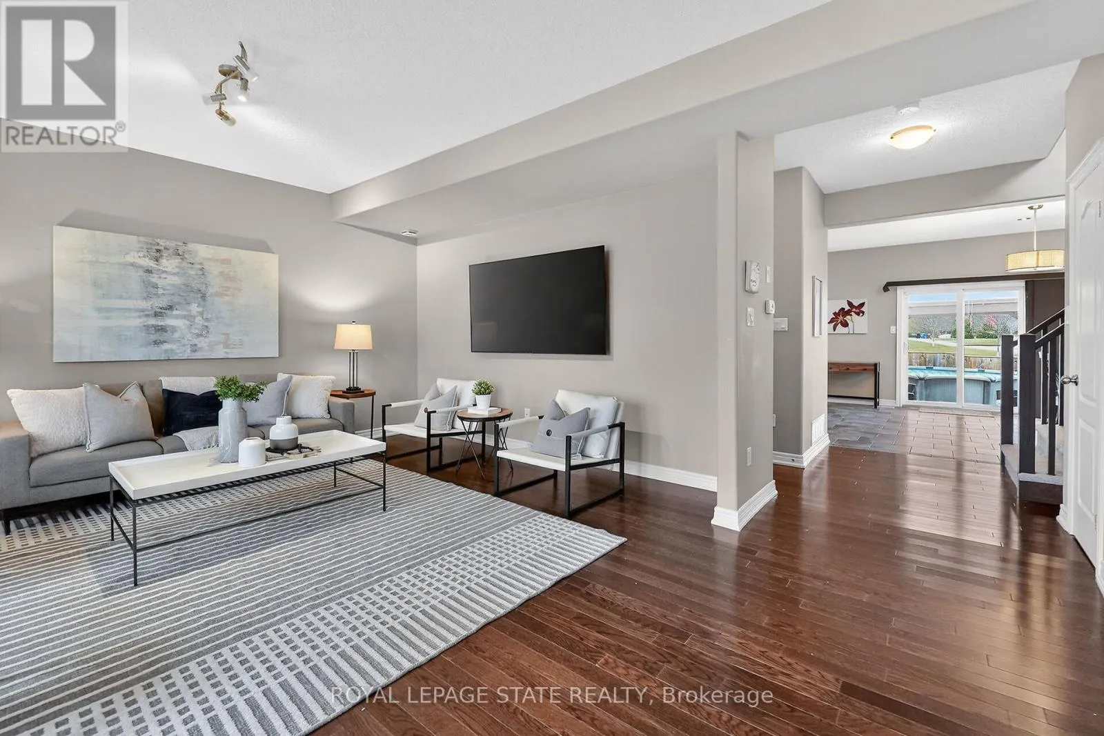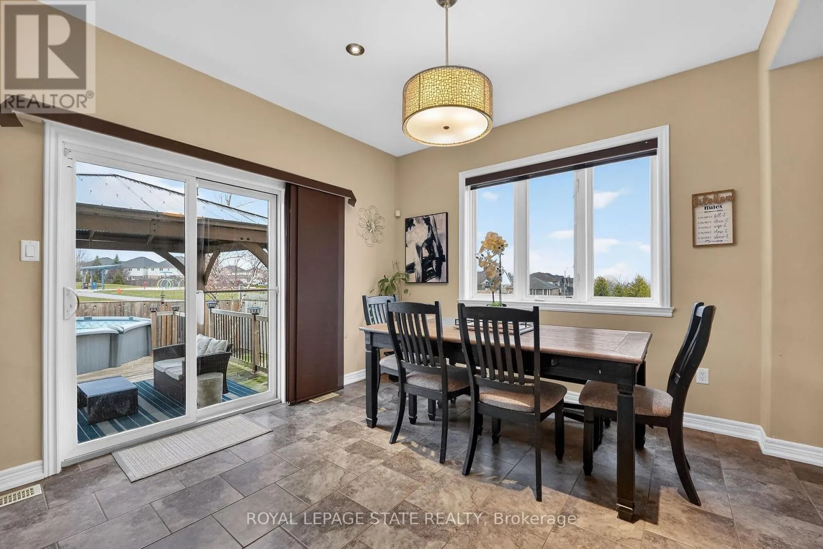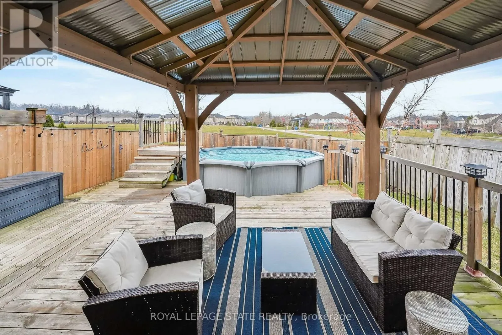directly onto a serene park and is just steps from the local elementary school. Boasting a new roof (2024), a double-car garage, and an oversized driveway with parking for four cars, it is perfectly prepared for family life. The main floor features hardwood flooring, an expansive living room, and a sun-filled, oversized eat-in kitchen. Upstairs, you’ll find durable vinyl flooring throughout three generous bedrooms, including a primary suite with a walk-in closet and a 3-piece ensuite. On clear days, enjoy glimpses of Lake Ontario and the Toronto skyline from the second floor. The backyard is a private entertainer’s dream, featuring a large deck, a cedar gazebo, an above-ground pool, and dedicated gas lines for both a BBQ and fire pit. The walk-out basement includes a cozy, private recreation room-ideal for a home office or quiet retreat-completing this incredible opportunity in the heart of Niagara’s wine country. (id:62650)