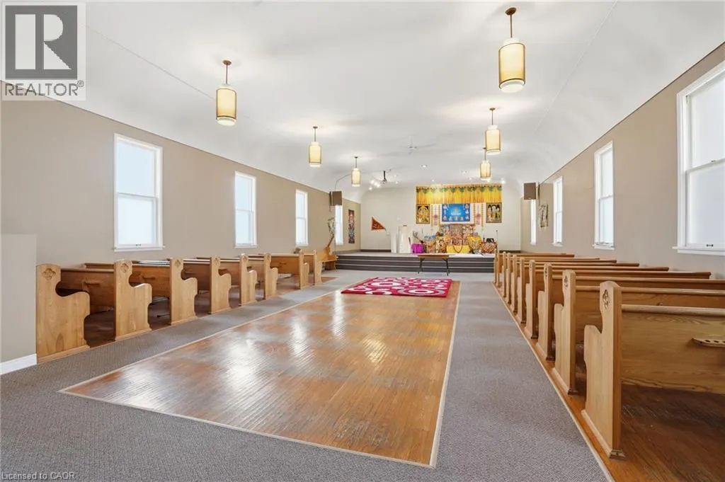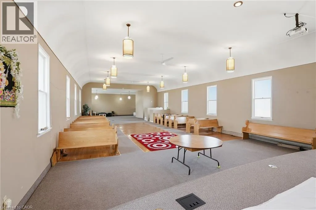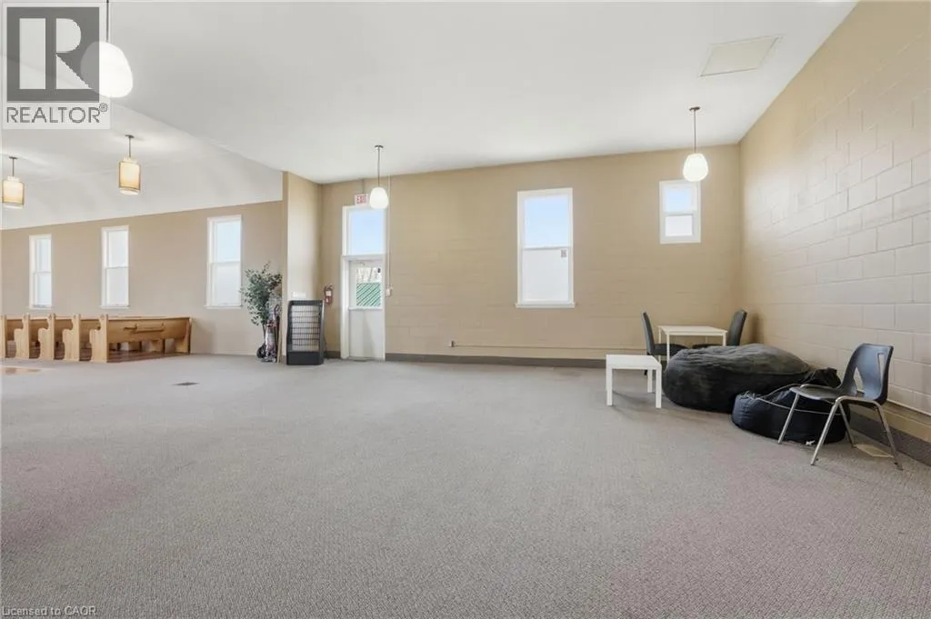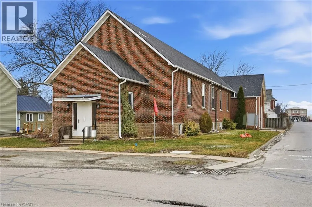 Permissible uses allow for a wide variety of commercial applications, including office space, community-oriented uses, and the potential for multiple commercial rental configurations, creating a unique opportunity for both investors and end users. Beautifully maintained, solid concrete block church located in Hagersville’s established northeast neighbourhood, just minutes to parks, arena, and downtown amenities, with convenient access to Hamilton, Brantford, and