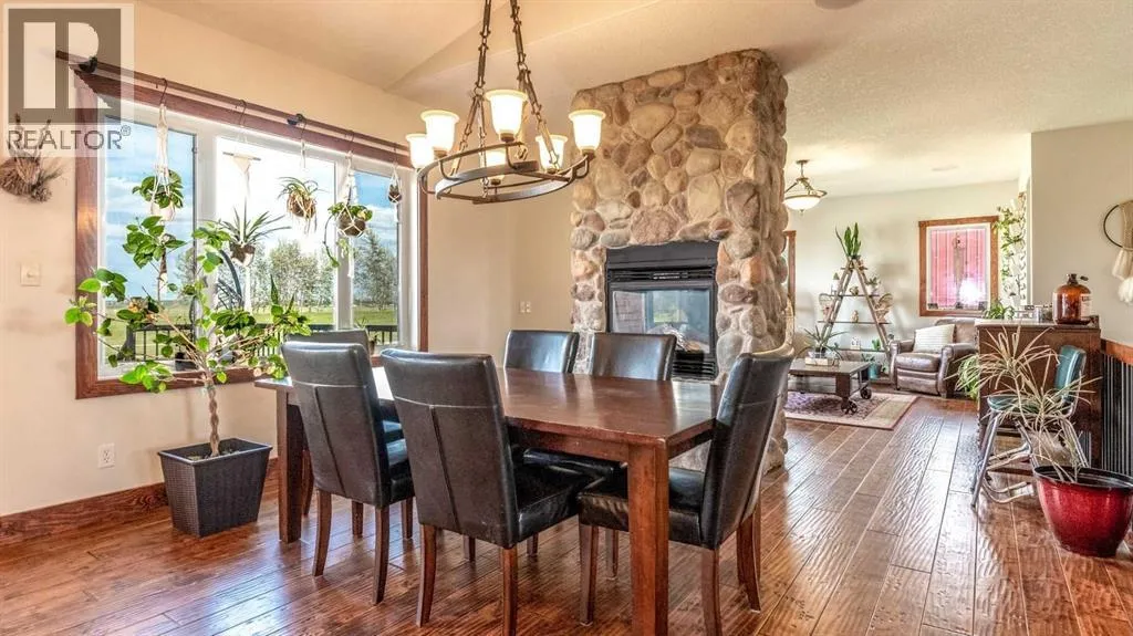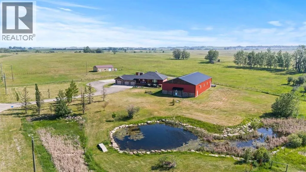living the OPEN FLOOR PLAN is flooded with natural light throughout the day and enjoys A/C on warmer days. A stunning kitchen boasts top of the line appliances and features a massive eat up island with additional seating. The open ended dining area is nestled next to a floor to ceiling rock faced fireplace and overlooks the pristine landscaped rear yard. A FAMILY SIZED GREAT ROOM offers up a restful retreat steps from the kitchen and dining area. The main floor primary bedroom is complete with a 3 pc en-suite bath and walk in closet. Easy access off the triple garage leads into the mudroom, two piece main bath and main floor laundry. HEATED FLOORS and large windows set the stage in the lower level for cozy evenings where you will find a large recreation area plus 3 more bedrooms and a five piece bath. A much desired large storage area completes the lower level. The 4500 sq ft shop with a developed main floor and mezzanine including a 2 pc bath is ready to develop further for long term family. The open area of the shop has an asphalt floor and the walls are insulated and boarded. The two large rear facing doors have the height you need to store your RV. The immaculate grounds feature inground sprinklers and a natural pond that attracts wildlife and birds. The Strathmore West ASP includes this 3 acre parcel. A potential rezoning in a few years might make this 3 acre parcel a worthy commercial consideration? There is a large concrete pad already poured on the North side of the property which would make an ideal base to bring in a modular or mobile home. Permits and applications must go through t he Town of Strathmore as this property is annexed in to the Town. Now is the time to think about a long term investment – live here for 10 years while the town builds out towards you and enjoy the potential revenue generation or create a family set up that delivers a dream come true for many. For more information on the Strathmore West ASP please access the uploaded documents. (id:62650)
