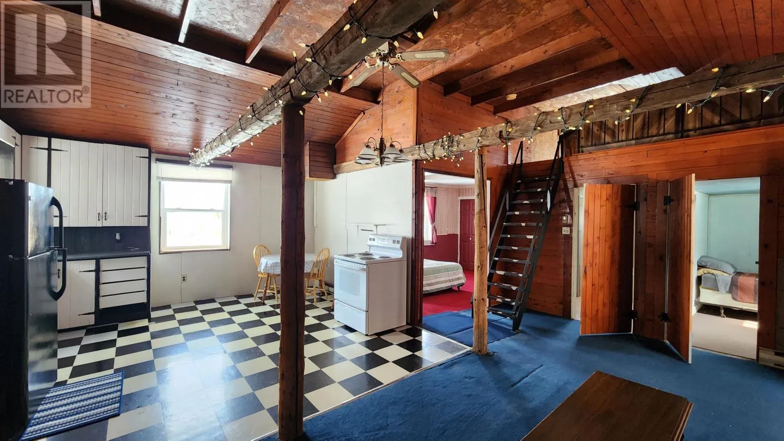 Enjoy the rustic cabin feeling complete with timber framing and vaulted ceiling. This property features 2 bedrooms and 1 bathroom, open concept living area, eat-in kitchen, as well as loft + storage space, a sunroom, deck, & shed. Built in approximately 1991, with some updates to windows, metal roof, well pump, sunroom addition, and some fresh paint throughout. The