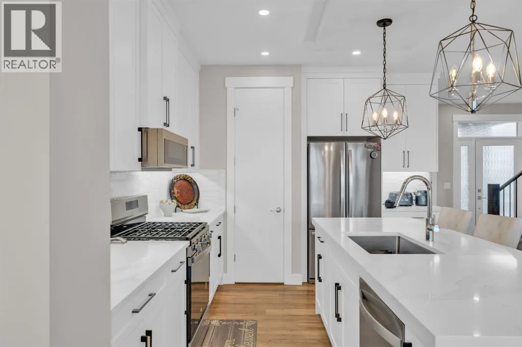 RARE FIND — ONLY THE GARAGE IS ATTACHED! ENJOY THE PRIVACY OF A DETACHED HOME WITH THE VALUE OF A HALF-DUPLEX!Welcome to this stunning, fully upgraded home in the highly sought-after community of Kinniburgh South! This front-attached garage property offers a separate side entrance and backs onto no homes — just beautiful greenery and open views, giving you privacy that’s