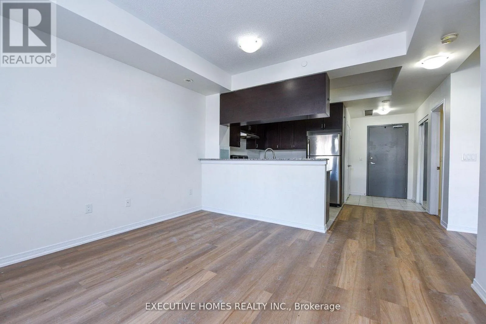 Newly renovated Hardwood Floor Condo Unit Offers (1 Bdrm + Den) (with patio + 1 W/R )) Out to Patio Bright & Spacious Living + Dining// Open Concept// Spacious Kitchen w/ Ceramic Floor + S/S Appliances + Back Splash // Bright Master Bedroom w/ Large Closet// Den Can / Ensuite Laundry// 1 Underground Parking Space// Great Amenities// Close to HWY,
