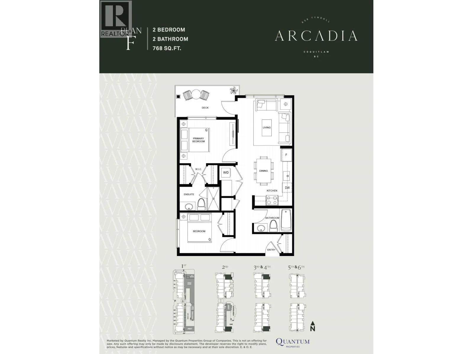 Welcome to Arcadia in Coquitlam West. This 2 bedroom, 2 bathroom home offers 764 sq. ft. of contemporary living with a functional open layout & one secure underground parking stall included. Bright living areas feature 9´ ceilings, laminate flooring, & central A/C. The modern kitchen includes quartz countertops, two-tone cabinetry, stainless steel appliances, & soft-close drawers. The primary bedroom offers