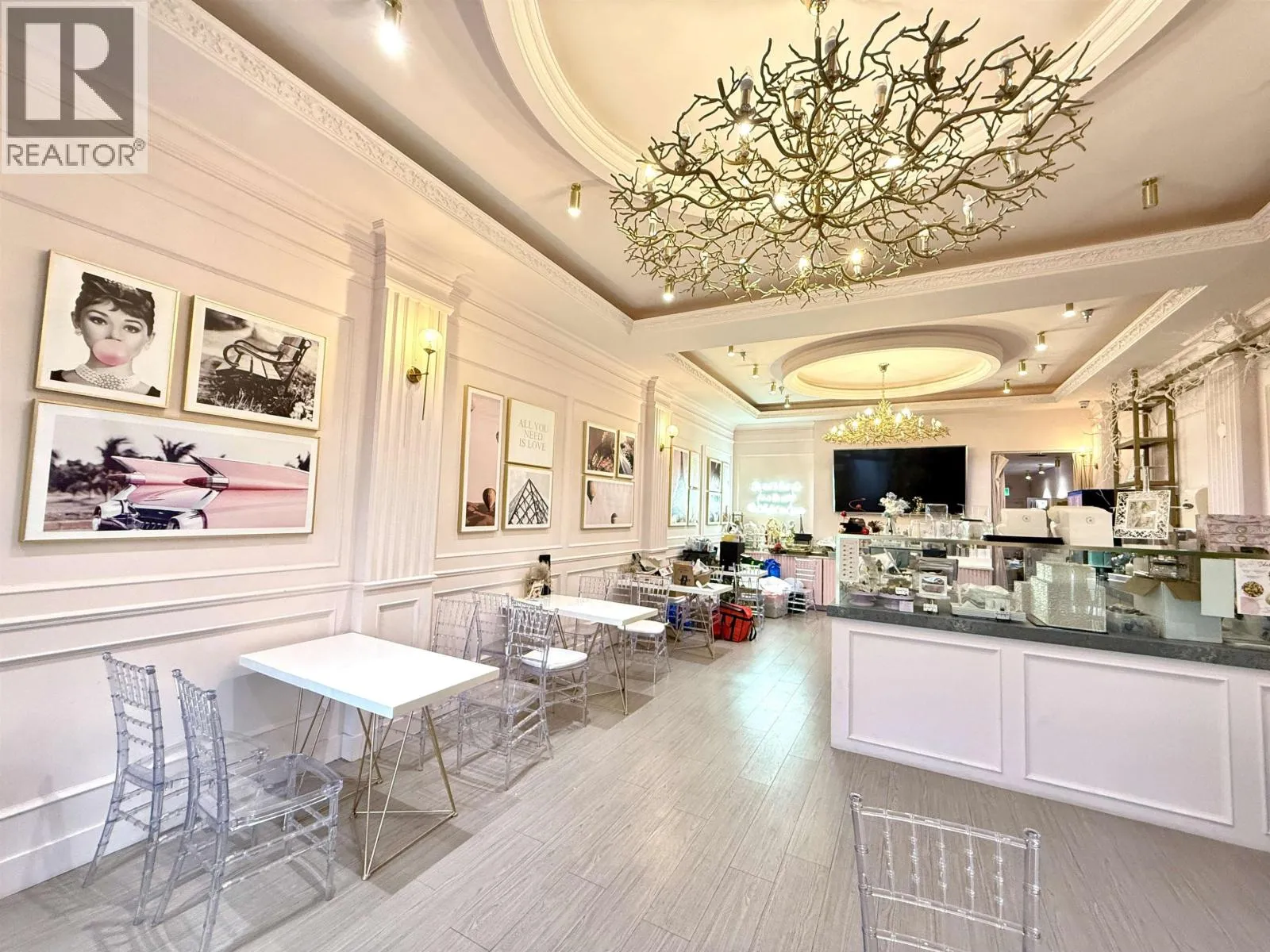 *Showing by appointment only, do not disturb staff. * Excellent turnkey cake shop for sale in the heart of Richmond. Situated in a high-traffic central area, surrounded by residential and office buildings, and conveniently located next to the SkyTrain station, supermarket, and all essential amenities. The 1,052 sq.ft. space features elegant decor, a wide selection of popular signature cakes and