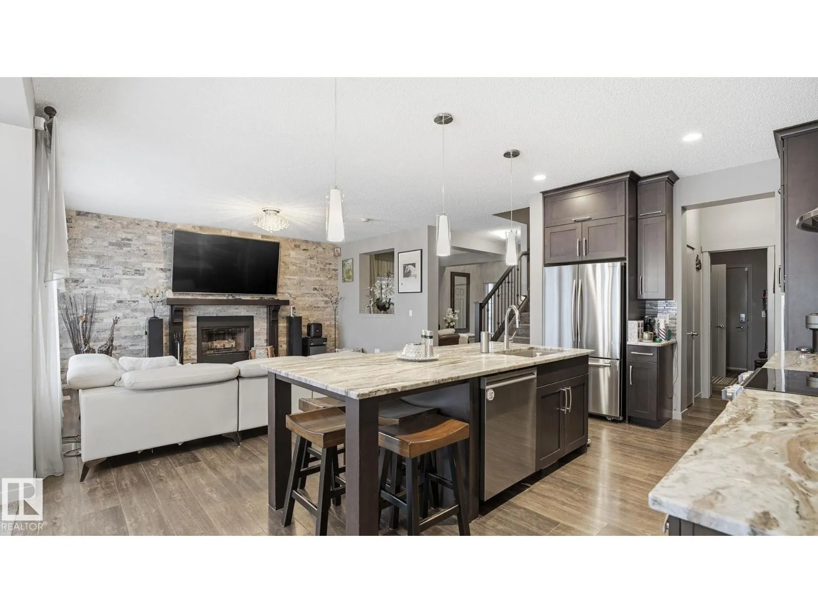 Discover this desirable two-storey home in Hawks Ridge, BACKING ONTO GREEN SPACE AND A FUTURE K–6 SCHOOL SITE. a peaceful suburban community surrounded by NATURE AND LOCATED NEAR BIG LAKE, GLENDALE GOLF CLUB, and a provincial park with SCENIC WALKING TRAILS AND GREEN SPACES. Offering approximately 2482 sq ft of thoughtfully designed living space, the open-concept main floor features