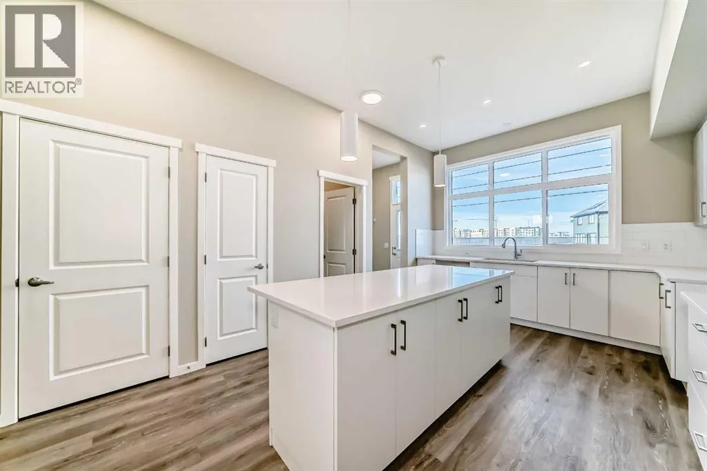 front of the home, a versatile flex room offers the perfect place for a home office, reading lounge, kids’ playroom, or creative space. As you move toward the rear of the home, the layout opens beautifully into a bright and spacious living area designed for both daily living and entertaining. The living room feels warm and welcoming, the oversized dining area is ideal for family dinners or hosting friends, and the kitchen truly anchors the space with its stylish blend of modern cabinetry and warm wood tones. Complete with quartz countertops, a classic white subway tile backsplash, stainless steel appliances, and a large central island, this kitchen delivers both style and function in equal measure. Upstairs, a smartly positioned central loft creates a valuable second living space while also offering privacy between the primary retreat and the secondary bedrooms. The primary suite is a peaceful escape, featuring a spacious walk-in closet and a beautifully appointed 4-piece ensuite with dual sinks. Two additional bedrooms provide plenty of room for children, guests, or hobbies, while the full 4-piece bathroom and upper-floor laundry add everyday convenience. A secondary entrance adds even more versatility, offering future potential for a guest area, extended family setup, or additional living space (subject to city/municipal approval and permitting). This home also comes complete with full front and backyard landscaping, including sod, mulch on the side yards, and trees/shrubs in the front as per community guidelines. What truly sets this property apart is the oversized lot—a rare opportunity that offers endless possibilities for outdoor living, play space, gardening, or creating the backyard you’ve always envisioned. With the added side yard and a non-zero-lot-line placement, this home provides more breathing room and usability than many others, making it an exceptional option for buyers who value both space and future potential. Located in the vibrant four-season community of Mahogany, residents enjoy access to Calgary’s largest freshwater lake, two private beaches, a Beach Club, tennis courts, skating rinks, fishing, playgrounds, and over 22 km of scenic pathways and wetlands. The popular Village Market offers restaurants, cafés, shopping, and everyday conveniences, while nearby South Health Campus and the Seton Urban District add even more accessibility and lifestyle appeal. From summer paddleboarding to winter skating and peaceful walks through the wetlands, Mahogany offers a lifestyle that is truly second to none. (id:64429)